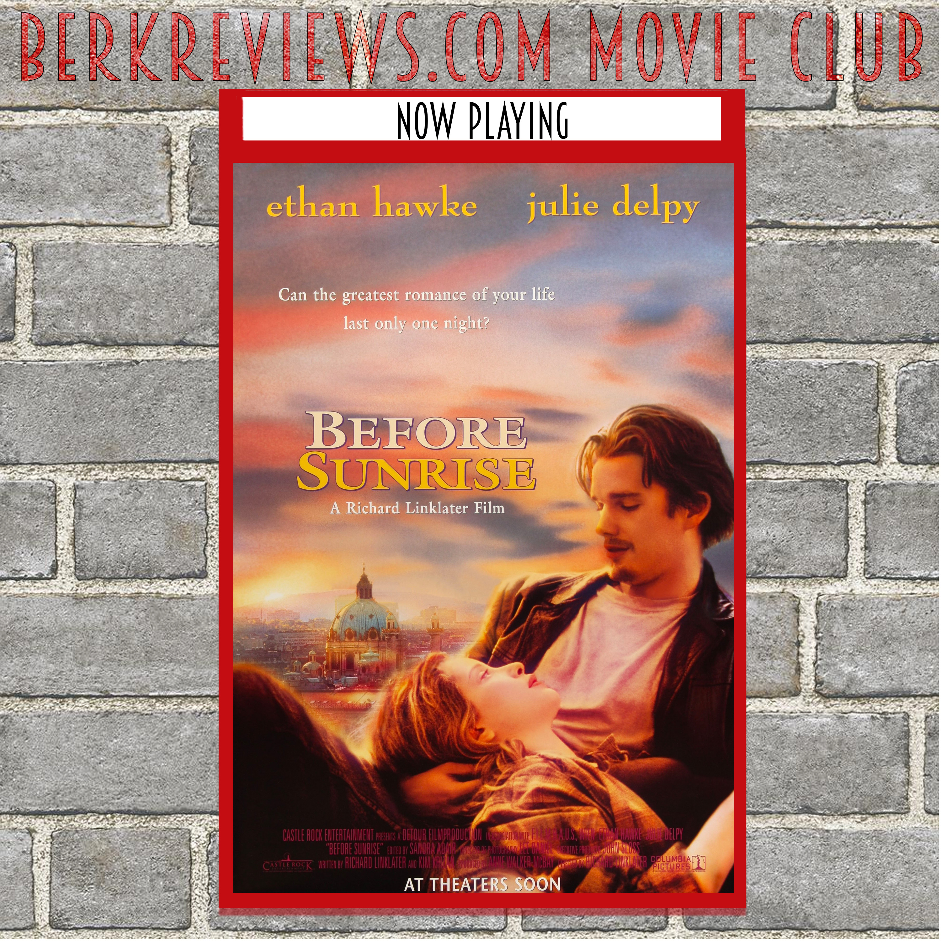 Jonathan picked Before Sunrise (1995) because it is one of the big gaps in Richard Linklater's filmography. The first film in the trilogy stars Ethan Hawke, Julie Delpy, and Andrea Eckert. In it, A young man, Jesse, and woman, Céline, meet on a train in Europe. They wind up spending one evening together in Vienna. Unfortunately, both know that this will probably be their only night together.