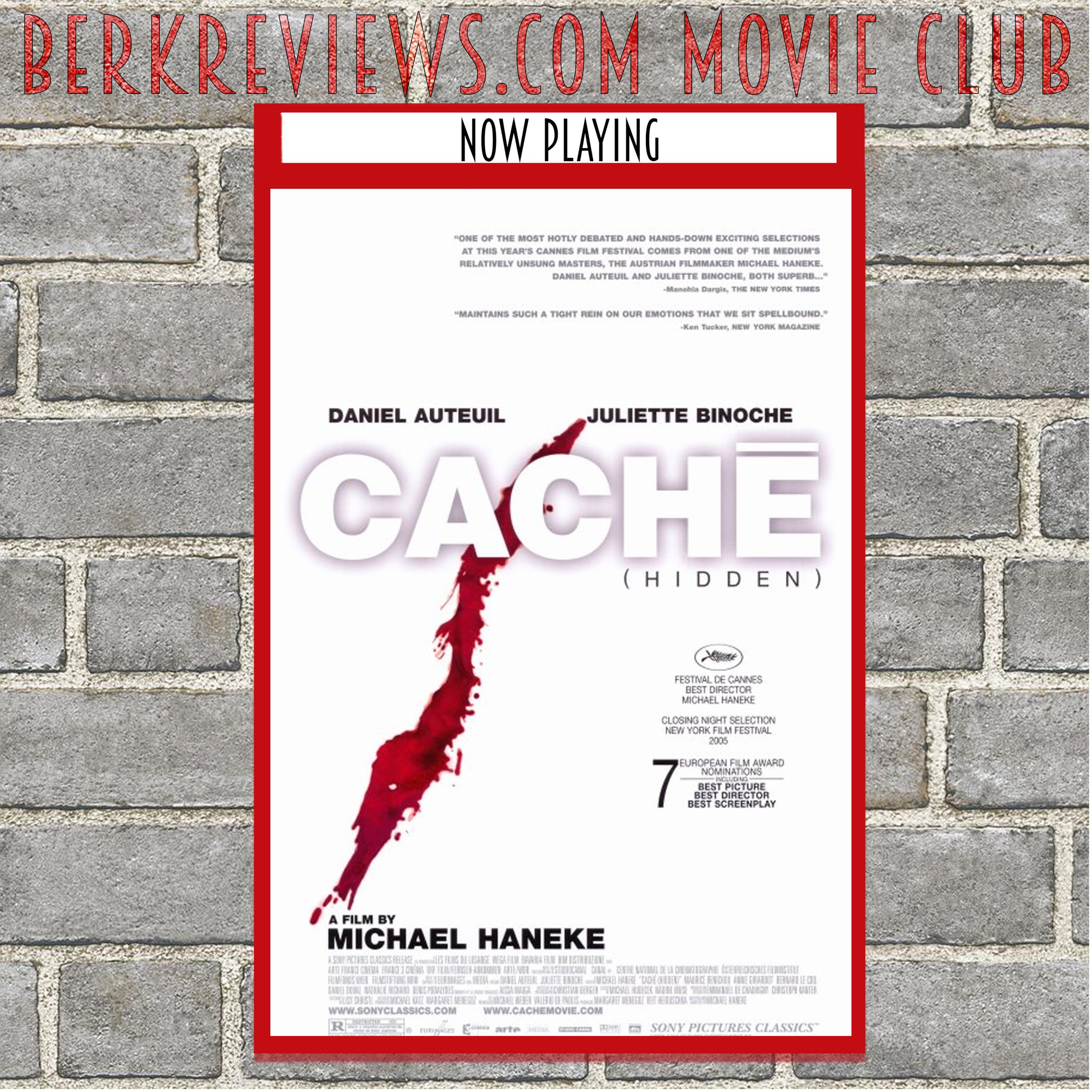 Jonathan purchased Caché (2005) a while back and just hadn't got to watch it. The film was written and directed by Michael Haneke and stars Daniel Auteuil, Juliette Binoche, and Maurice Bénichou. IMDb.com's synposis is "A married couple is terrorized by a series of surveillance videotapes left on their front porch."