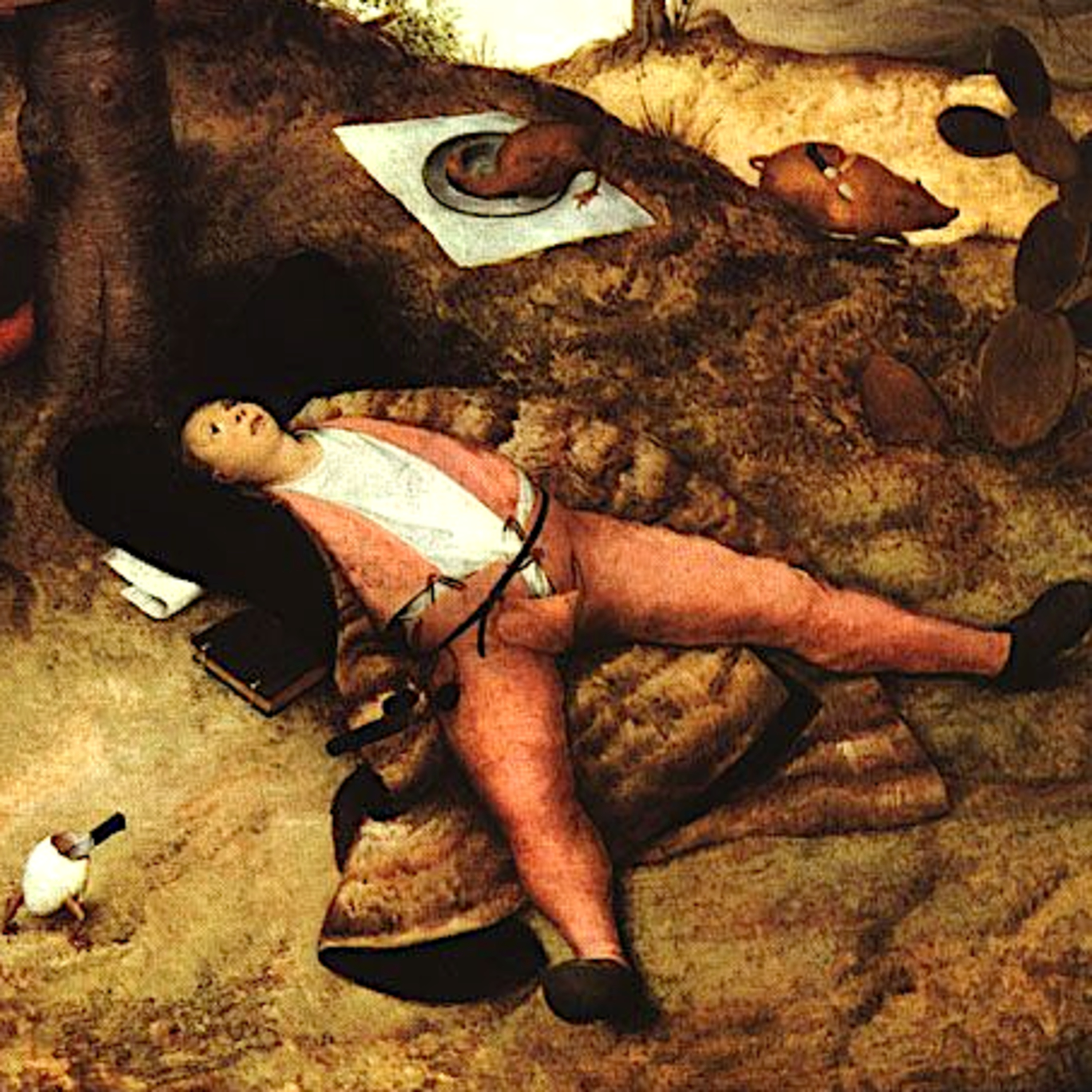 Pieter Brueghel der Ältere hat diese weltberühmte Vision des Schlaraffenlands 1576 gemalt. Ein Ritter, ein Bauer und ein Gelehrter liegen - vom vielen Genuss schon leicht adipös aufgequollen - unter einem Baum und warten darauf, dass die dort bereitgestellten Köstlichkeiten sich von selbst auf den Weg zu ihnen machen. Die Kombination von Überfluss und Trägheit entspricht natürlich der Moral des ausklingenden Mittelalters, doch als Allegorie für KI-Slop können wir uns kaum etwas Besseres vorstellen.