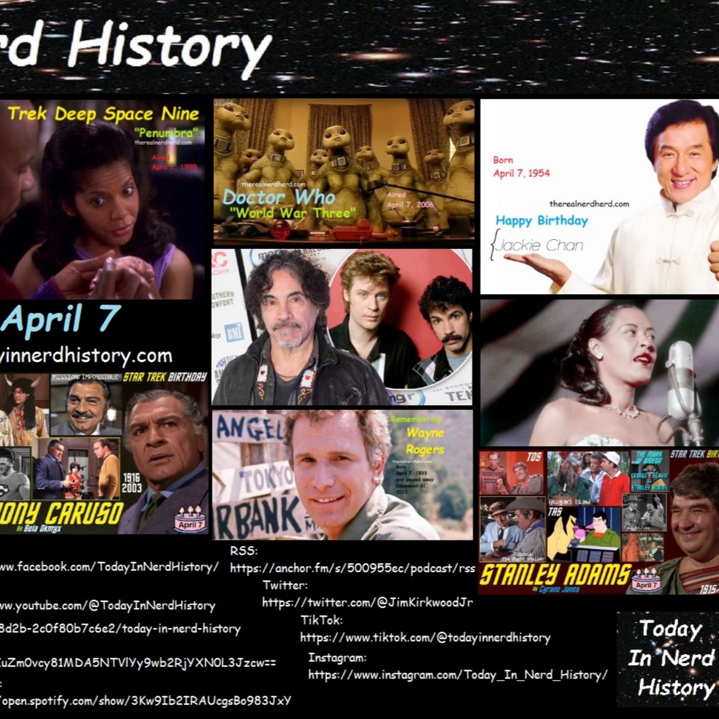 . #TodayInNerdHistory #April6 #TheBadNewsBears #StarTrek #StarTrekDeepSpaceNine #BusinessAsUsual #Penumbra #DoctorWho #WorldWarThree #JackieChan #JamesGarner #RussellCrowe #JohnOates #WayneRogers #BillieHoliday #AnthonyCaruso #StanleyAdams #SpencerDryden #GabrielleBeaumont #Birthday #TheRealNerdHerd #TheNerdHerd #NerdHerd #Nerd