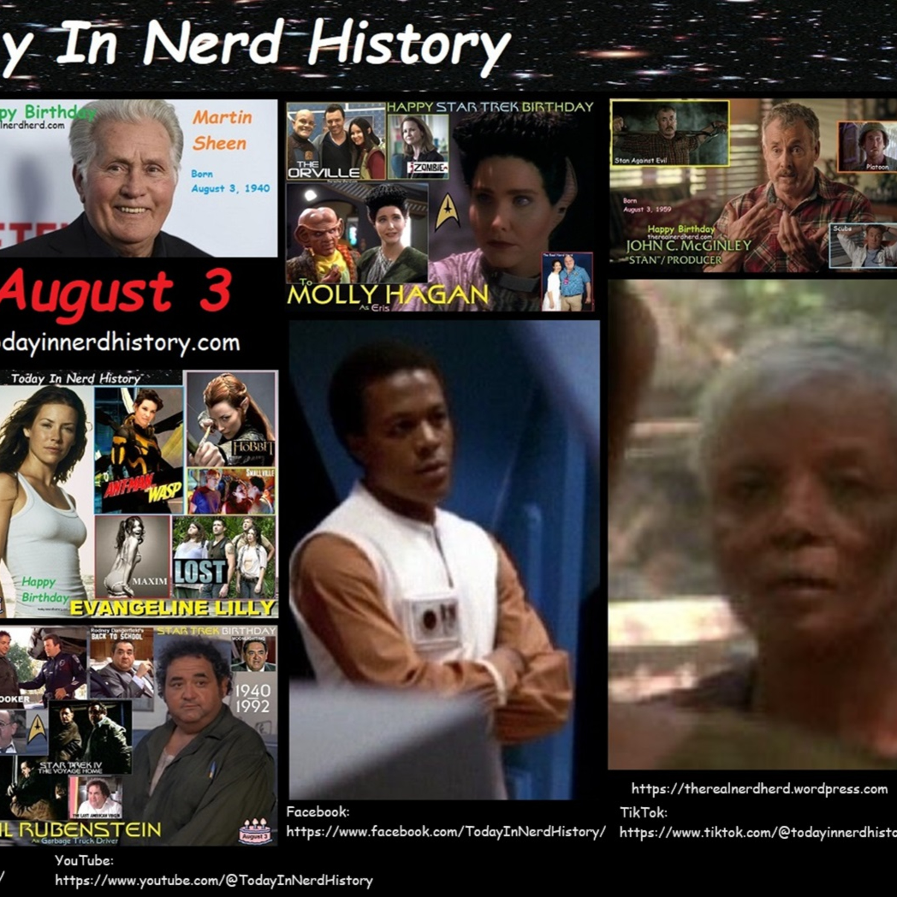 . #TodayInNerdHistory #August3 #TonyBennett #MartinSheen #MollyHagan #JohnCMcGinley #BrigidBrannagh #EvangelineLilly #StevenBerkoff #PhilRubenstein #MonicaPeterson #KevinSullivan #Birthday #History #News #OTD #FYP #Nerd .