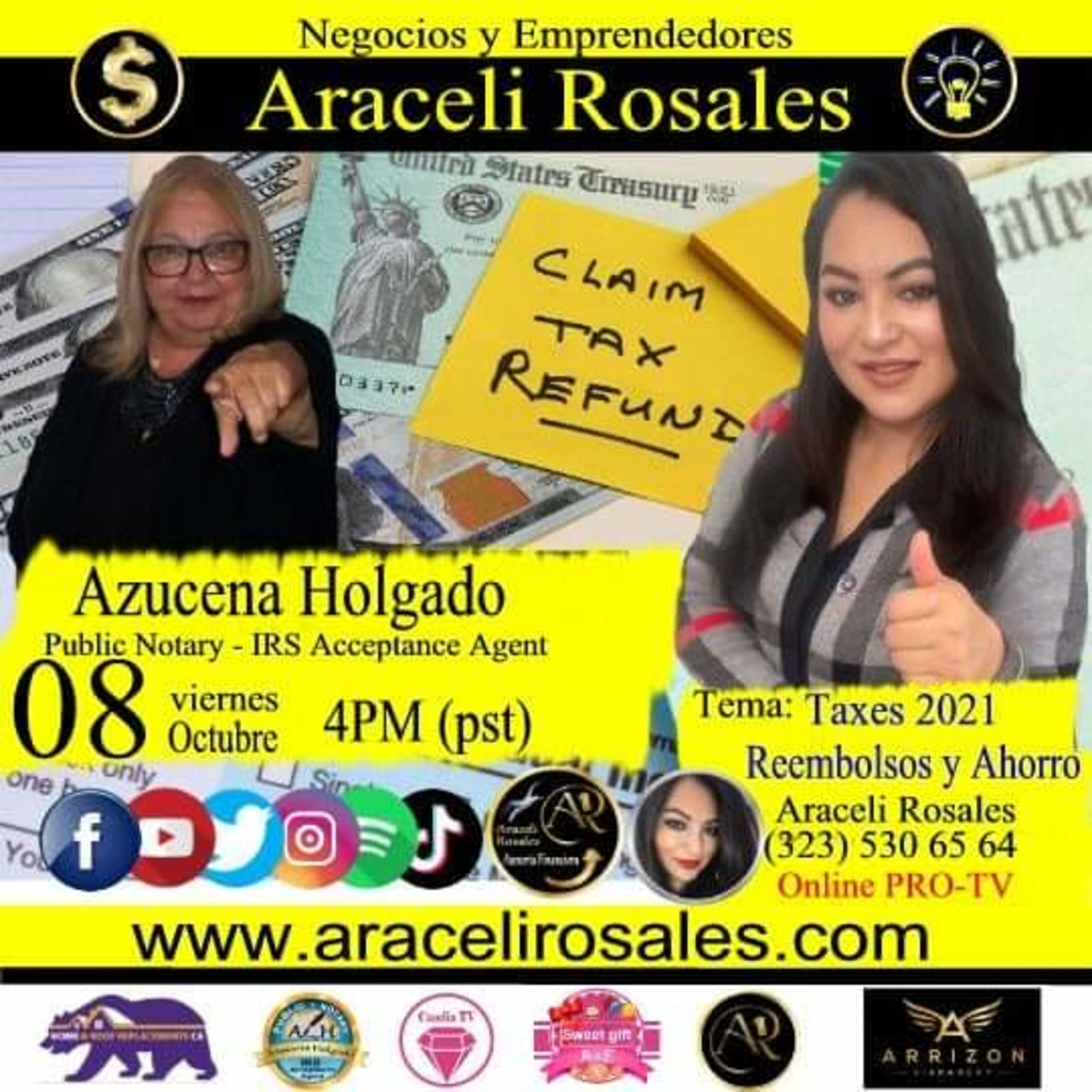 En #NegociosyEmprendedoresConAraceliRosales Junto a nuestra amiga Azucena Holgado, Public Notary - IRS Acceptance Agent, hablamos de taxes 2021 y de reembolsos.