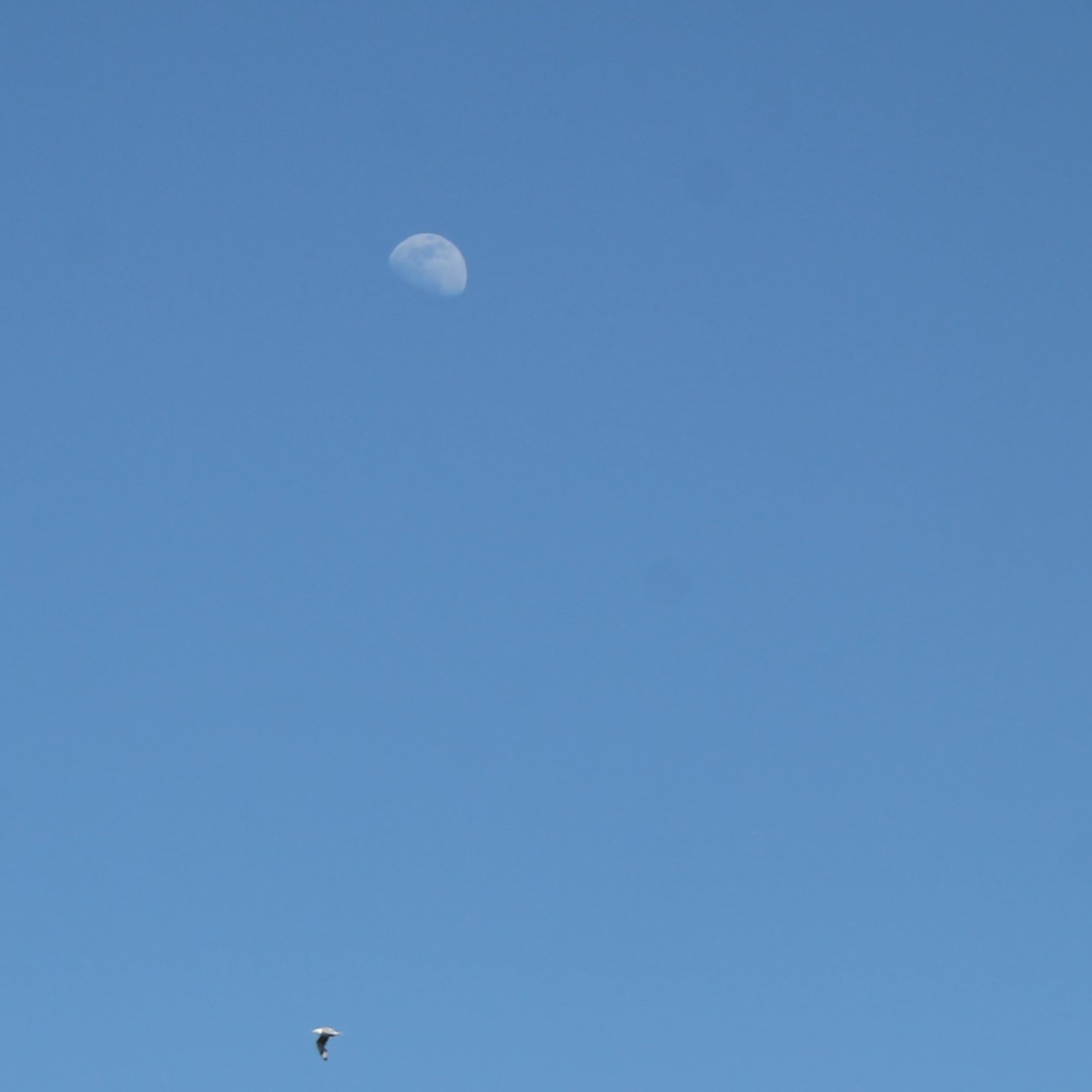 Photo: Picture of moon in clear blue sky with bird lower portion of picture