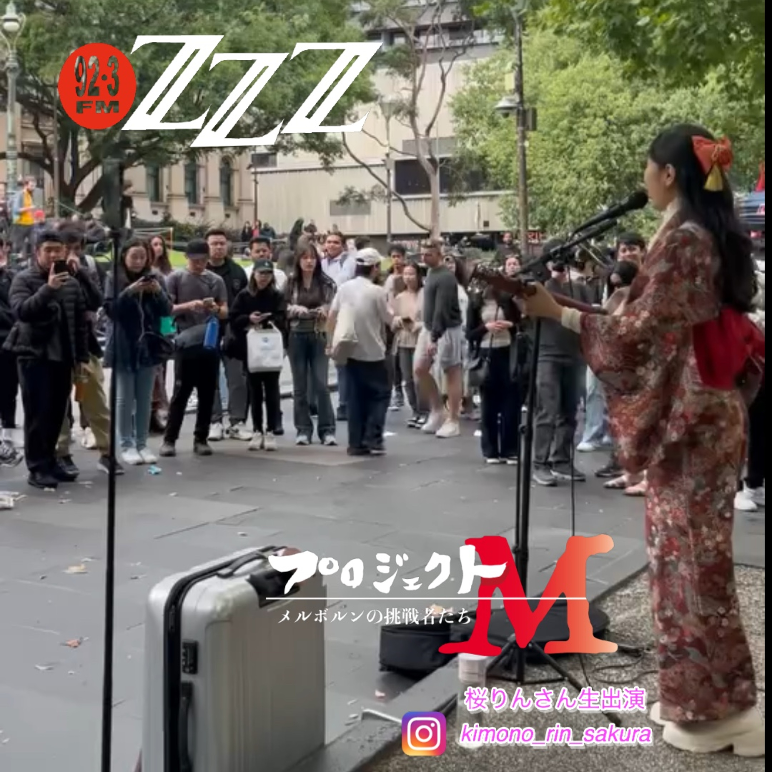 メルボルンCBDの図書館前で着物を着てギターを弾き日本の歌を歌っている桜りんさんにスタジオにお越し頂きインタビューしました。