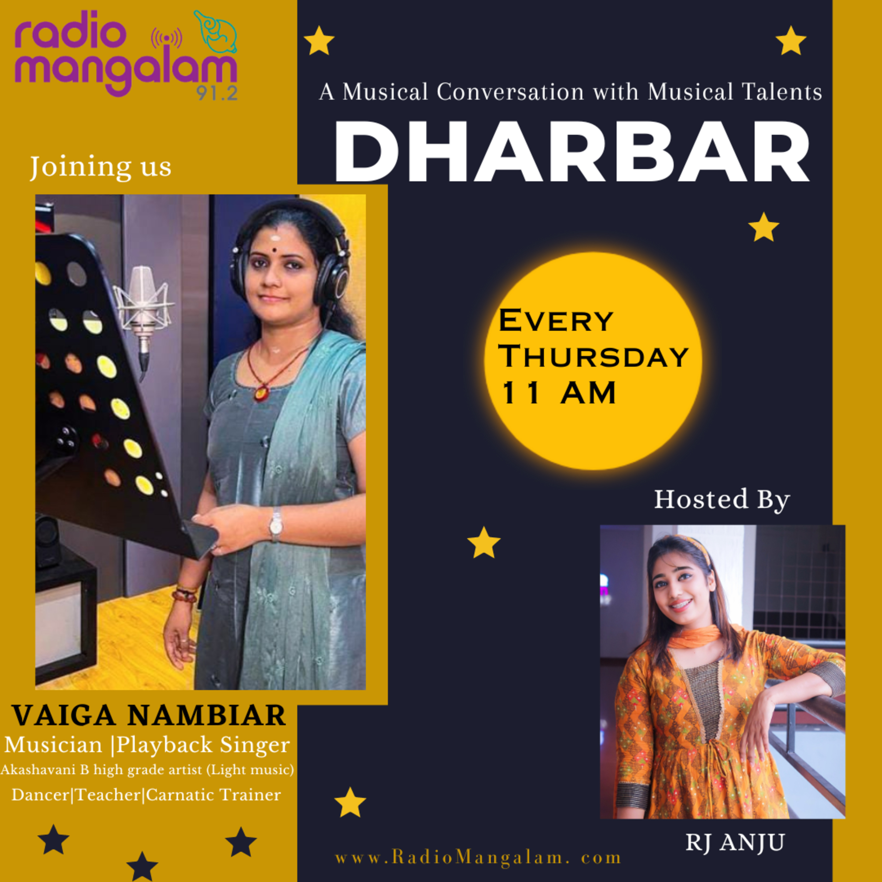 An Interview session with Vaiga Nambiar .she is a very professional singer who is gaining attention by singing the most remarkable songs in the playback field field today and is a Carnatic vocalist and a good Dancer besides being an Akashavani B Grade Artist . She is an Active presence in the Art scene Today as a very important multifaceted Talent.