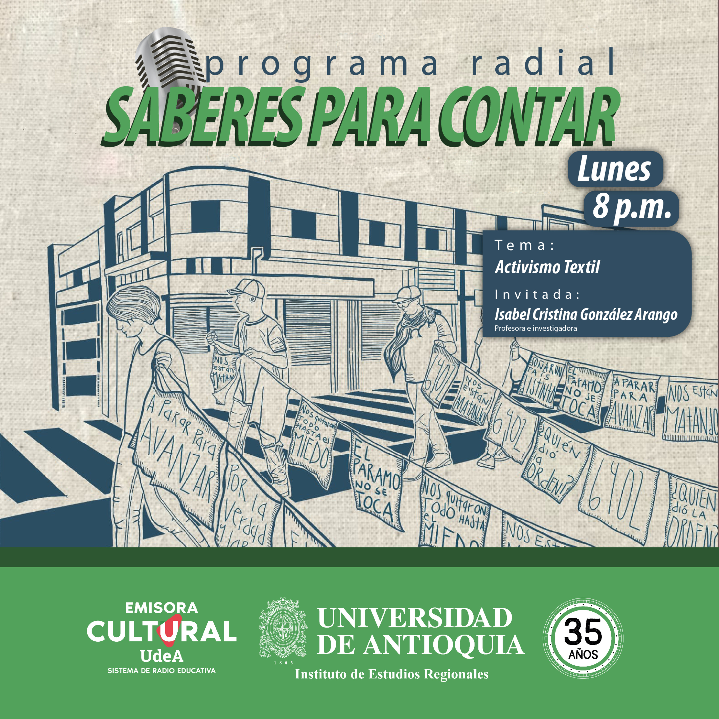 En este programa abordamos un nuevo tema en Saberes para contar. Nos acompañó la profesora e investigadora Isabel González Arango, integrante del grupo de investigación Cultura, Violencia y Territorio (CVT) del INER. Con ella conversaremos acerca de algunos detalles de su más reciente proyecto Activismo Textil.