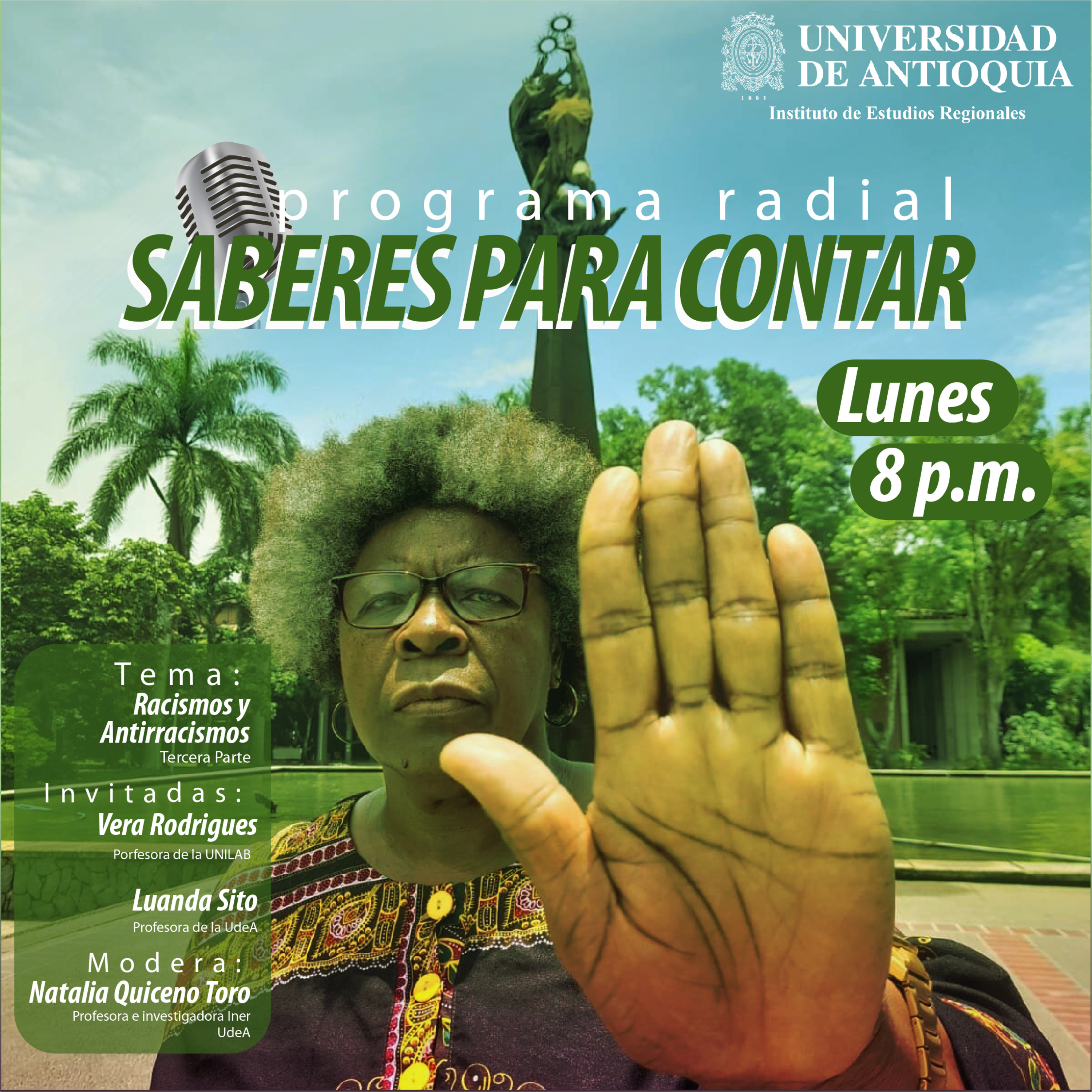Llega un nuevo episodio del especial Racismos y Antirracismos. Nuestras invitadas en esta oportunidad serán: Vera Rodrigues, profesora del Instituto de Humanidades y Letras de la Universidade da Integração Internacional da Lusofonia Afro-Brasileira – UNILAB, y Luanda Sito, profesora de la Escuela de Idiomas de la Universidad de Antioquia. Este especial es moderado por Natalia Quiceno Toro, profesora del Instituto de Estudios Regionales.