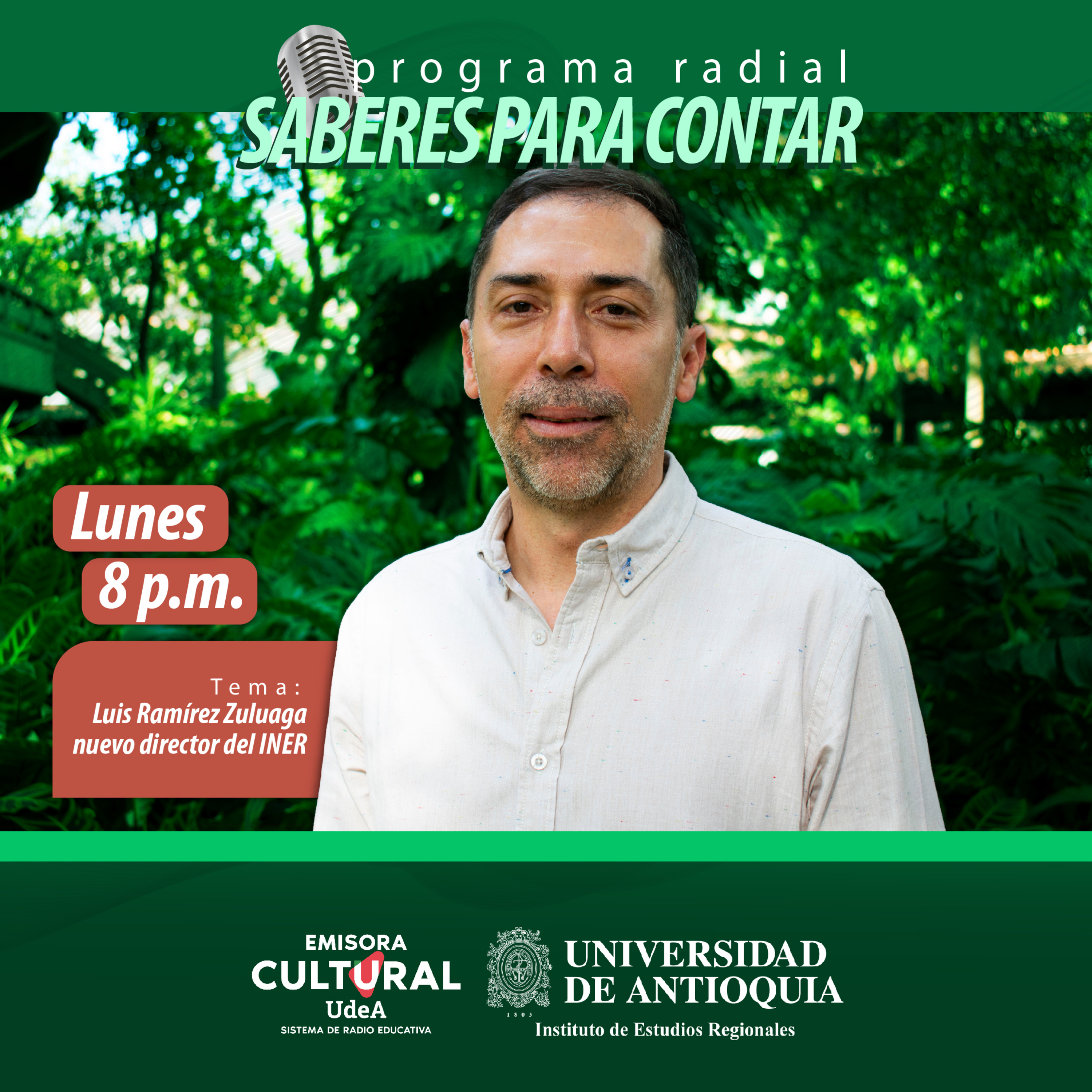 En este programa tuvimos como invitado al nuevo director del Instituto de Estudios Regionales de la UdeA, Luis Antonio Ramírez Zuluaga. Con él conversamos acerca de su propuesta de trabajo para el Instituto, titulada “El INER: un espacio para crear y cultivar vínculos en pos de una vida digna y en paz”.