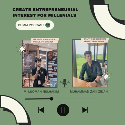 Meningkatnya jumlah pengangguran di Indonesia seringkali disebabkan oleh ketidakseimbangan antara jumlah angkatan kerja dan jumlah lapangan kerja. Maka dari itu, untuk mengatasinya, diperlukan jiwa-jiwa kewirausahaan khususnya bagi para generasi milenial agar dapat mengatasi permasalahan tersebut. Lalu, bagaimana cara menumbuhkan minat serta ketertarikan bagi para generasi milenial dalam bidang kewirausahaan? Yuk simak podcast BUMM untuk temukan jawabannya!