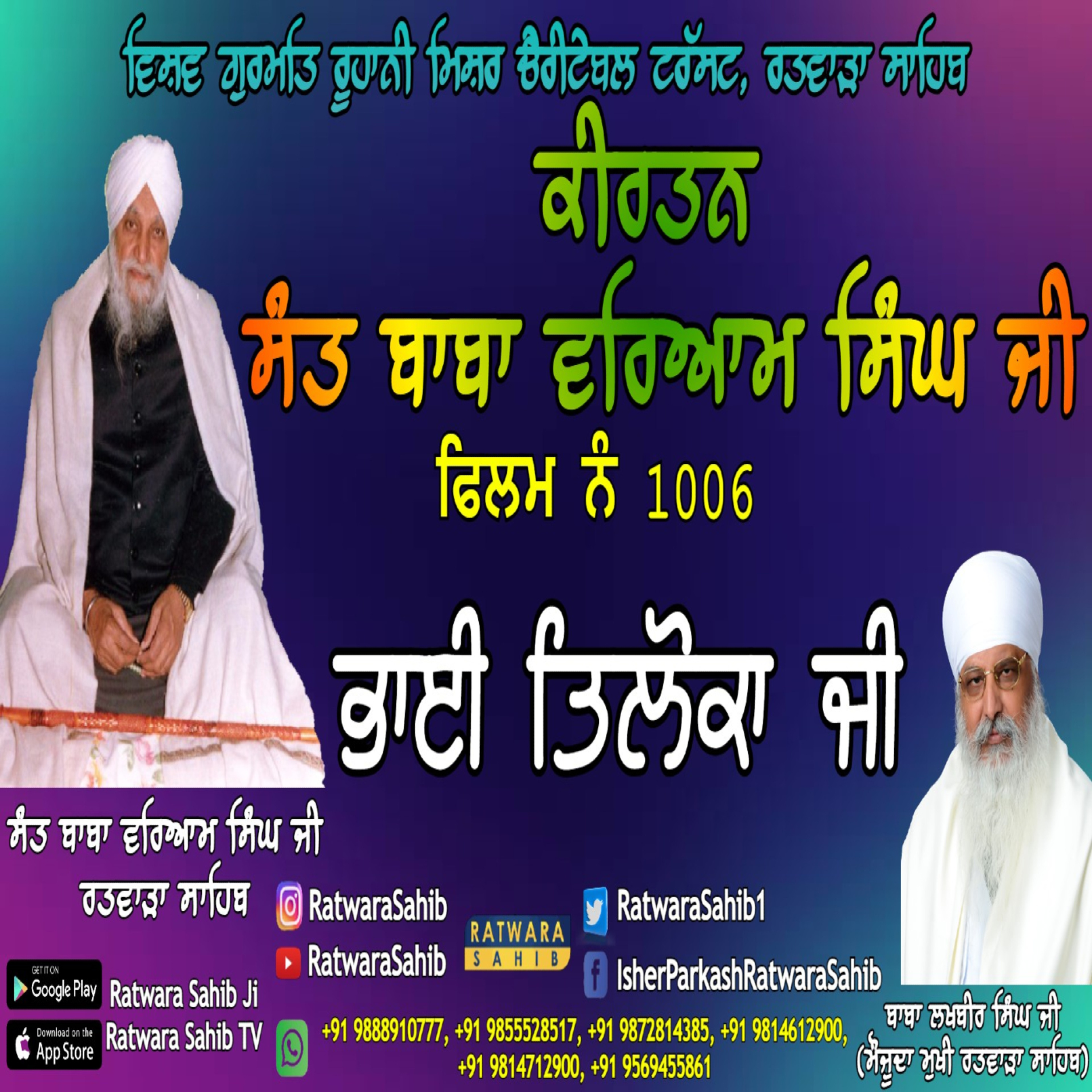 ਫਿਲਮ ਨੰ 1006 | ਕੀਰਤਨ ਸੰਤ ਬਾਬਾ ਵਰਿਆਮ ਸਿੰਘ ਜੀ ਰਤਵਾੜਾ ਸਾਹਿਬ | ਸਾਖੀ : ਭਾਈ ਤਿਲੋਕਾ ਜੀ |