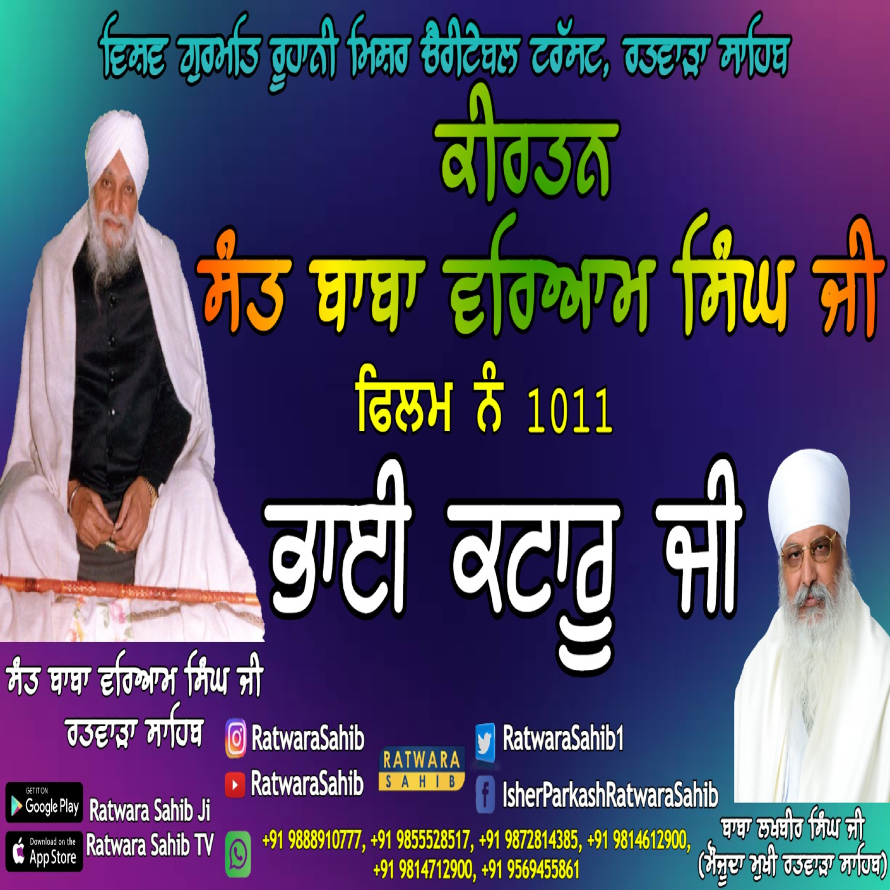 ਫਿਲਮ ਨੰ 1011 | ਕੀਰਤਨ ਸੰਤ ਬਾਬਾ ਵਰਿਆਮ ਸਿੰਘ ਜੀ ਰਤਵਾੜਾ ਸਾਹਿਬ | ਸਾਖੀ : ਭਾਈ ਕਟਾਰੂ ਜੀ |
