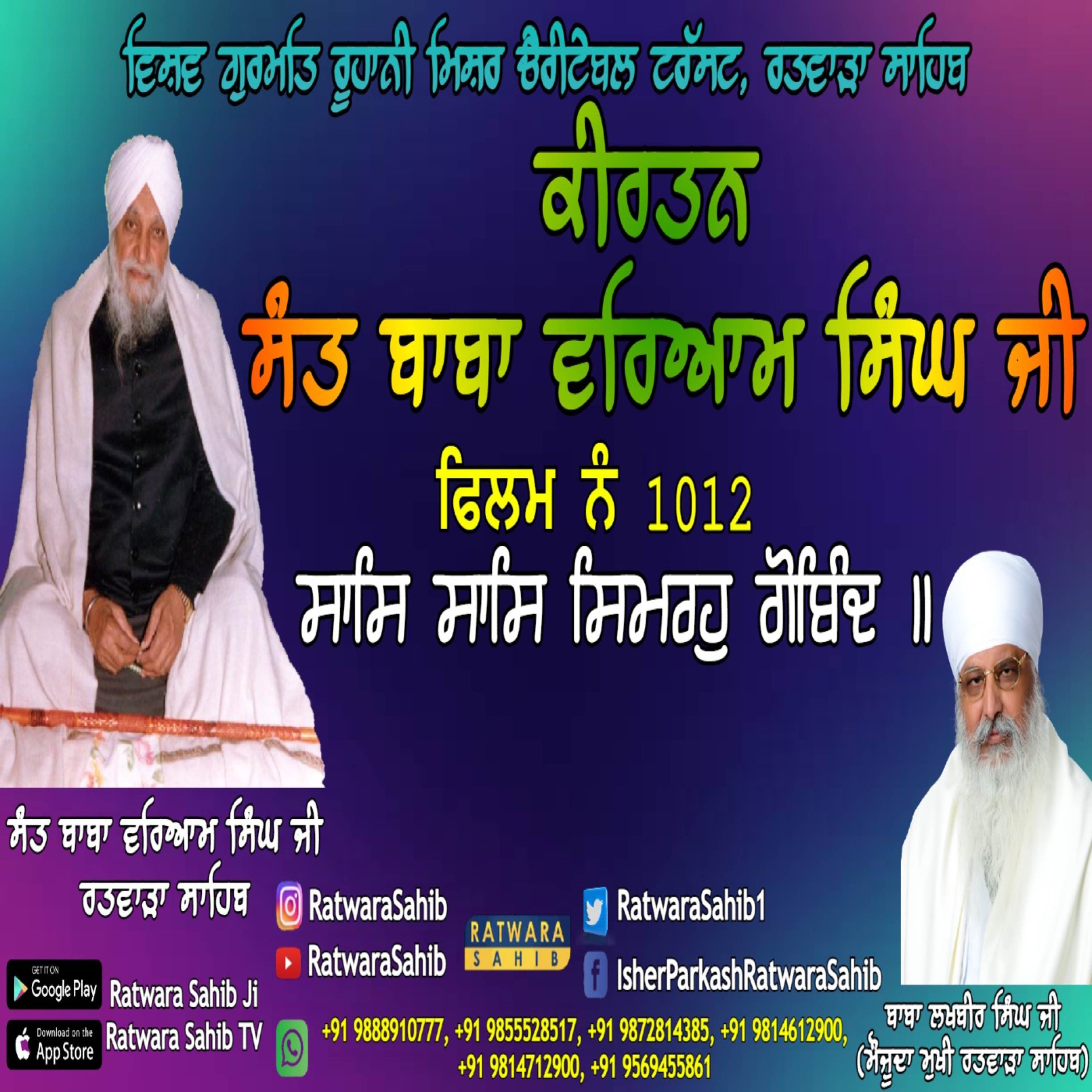 ਫਿਲਮ ਨੰ 1012 | ਕੀਰਤਨ ਸੰਤ ਬਾਬਾ ਵਰਿਆਮ ਸਿੰਘ ਜੀ ਰਤਵਾੜਾ ਸਾਹਿਬ | ਸਾਖੀ : ਸਾਸਿ ਸਾਸਿ ਸਿਮਰਹੁ ਗੋਬਿੰਦ ॥ |