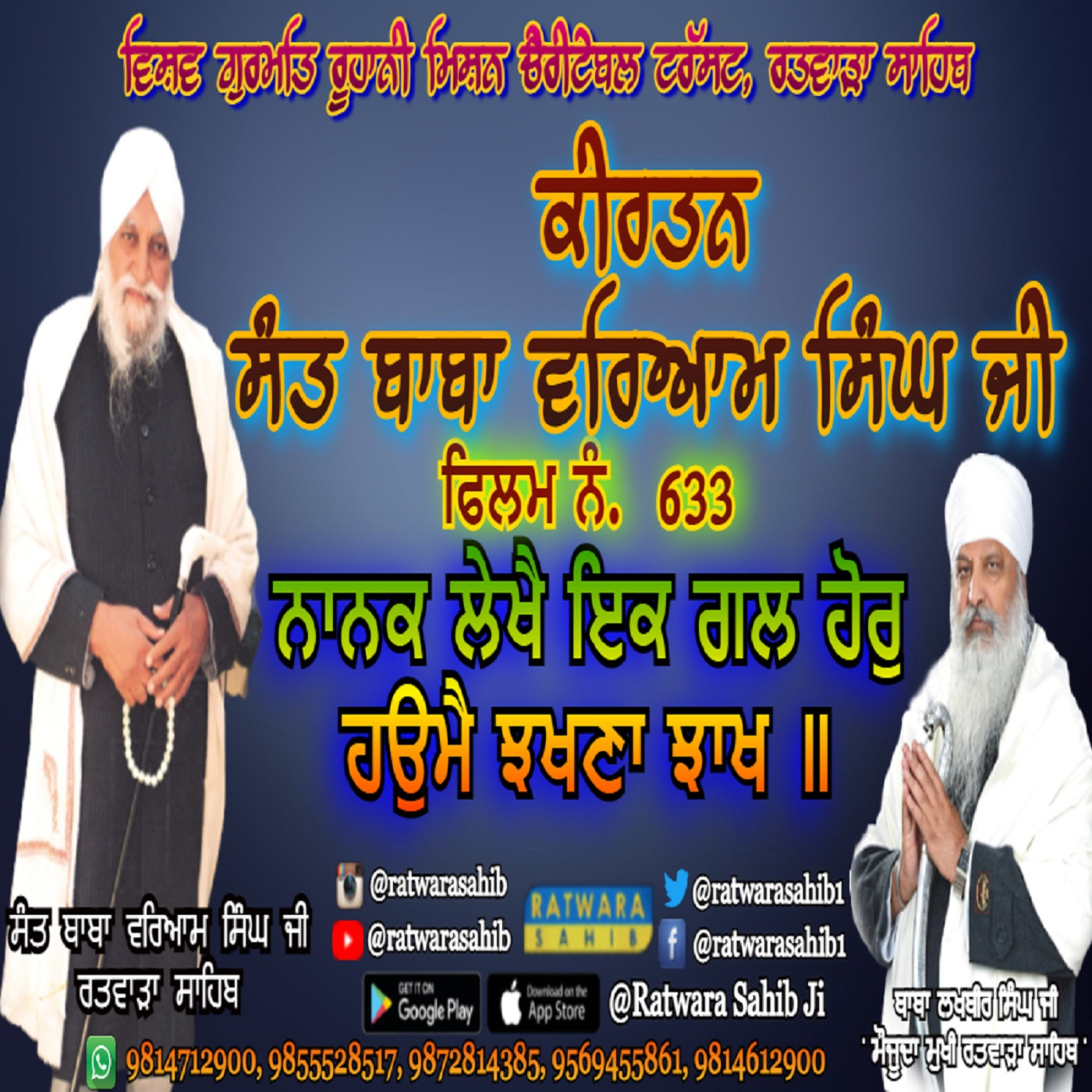 ਫਿਲਮ ਨੰ 633 | ਕੀਰਤਨ ਸੰਤ ਬਾਬਾ ਵਰਿਆਮ ਸਿੰਘ ਜੀ ਰਤਵਾੜਾ ਸਾਹਿਬ | ਸਾਖੀ : ਨਾਨਕ ਲੇਖੈ ਇਕ ਗਲ ਹੋਰੁ ਹਉਮੈ ਝਖਣਾ ਝਾਖ ॥ |