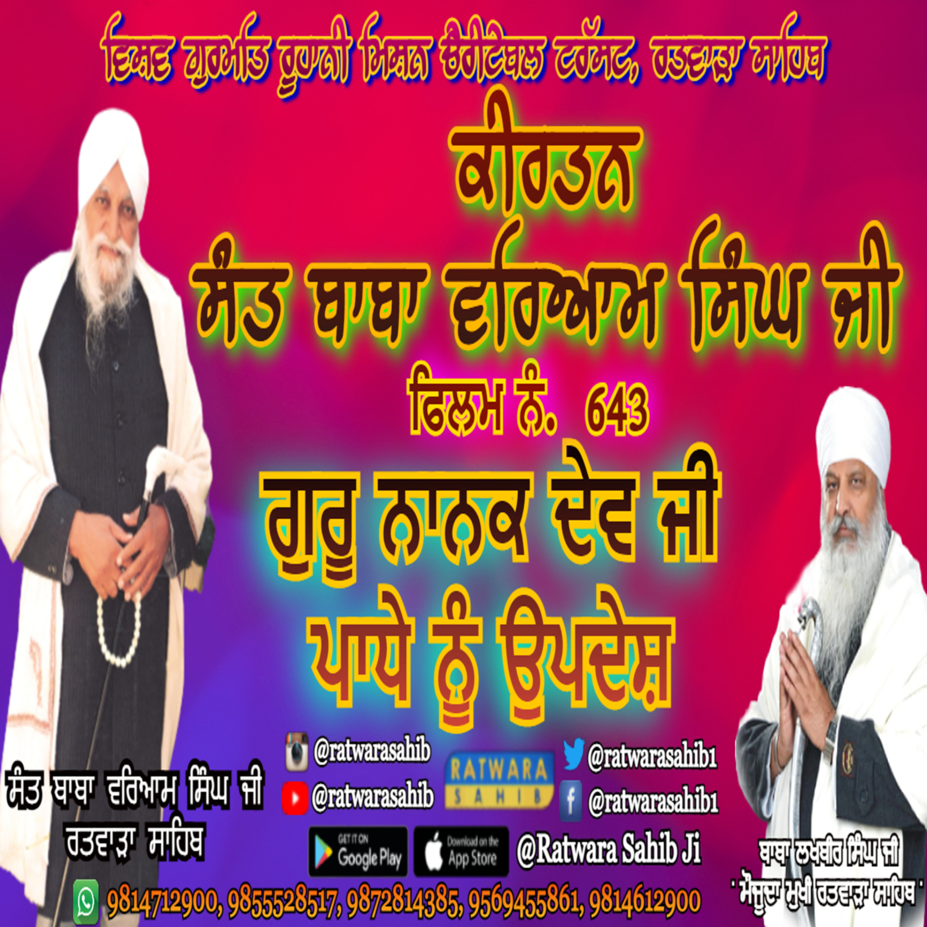 ਫਿਲਮ ਨੰ 643 | ਕੀਰਤਨ ਸੰਤ ਬਾਬਾ ਵਰਿਆਮ ਸਿੰਘ ਜੀ ਰਤਵਾੜਾ ਸਾਹਿਬ | ਸਾਖੀ : ਗੁਰੂ ਨਾਨਕ ਦੇਵ ਜੀ ਪਾਧੇ ਨੂੰ ਉਪਦੇਸ਼ |