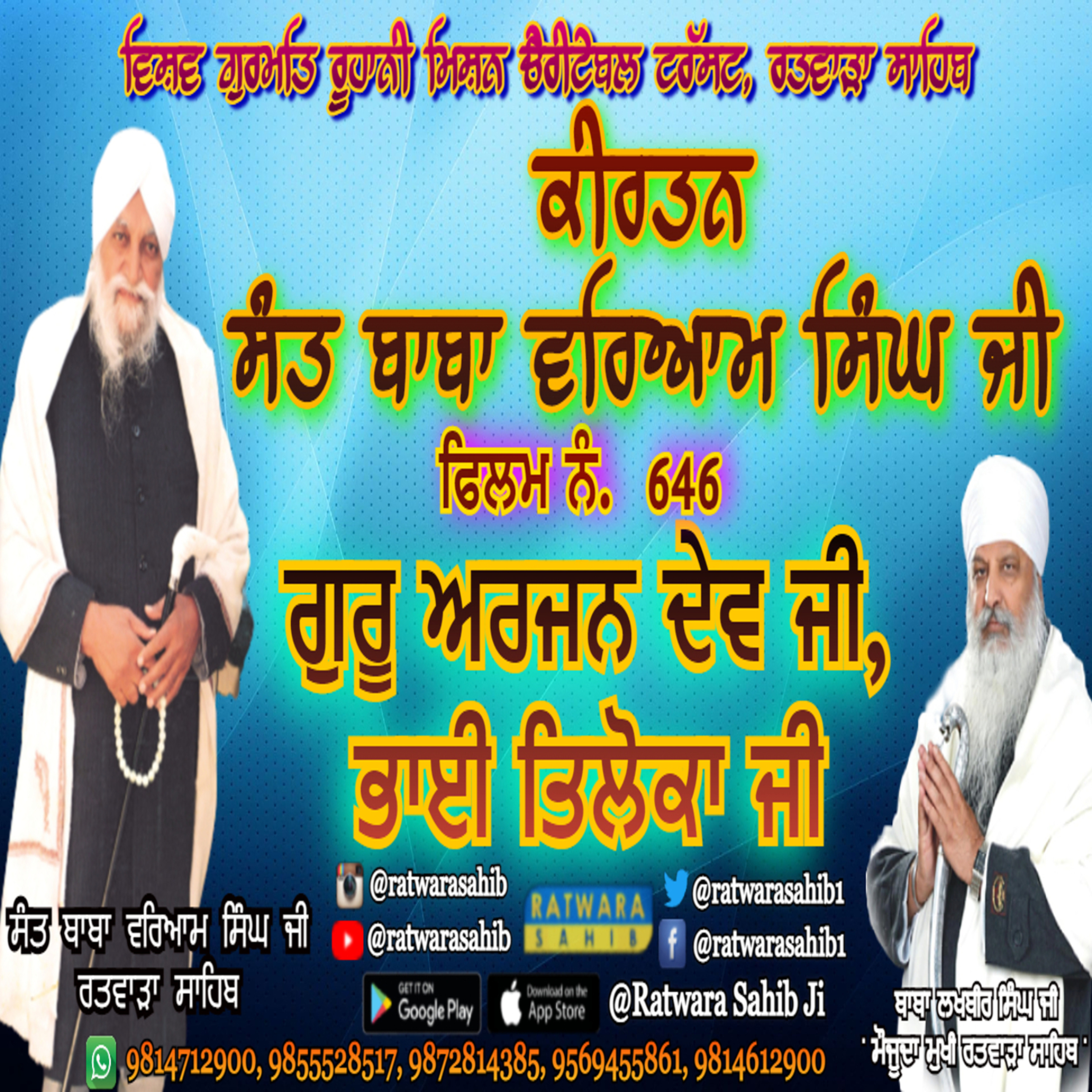 ਫਿਲਮ ਨੰ 646 | ਕੀਰਤਨ ਸੰਤ ਬਾਬਾ ਵਰਿਆਮ ਸਿੰਘ ਜੀ ਰਤਵਾੜਾ ਸਾਹਿਬ | ਸਾਖੀ : ਗੁਰੂ ਅਰਜਨ ਦੇਵ ਜੀ, ਭਾਈ ਤਿਲੋਕਾ ਜੀ |