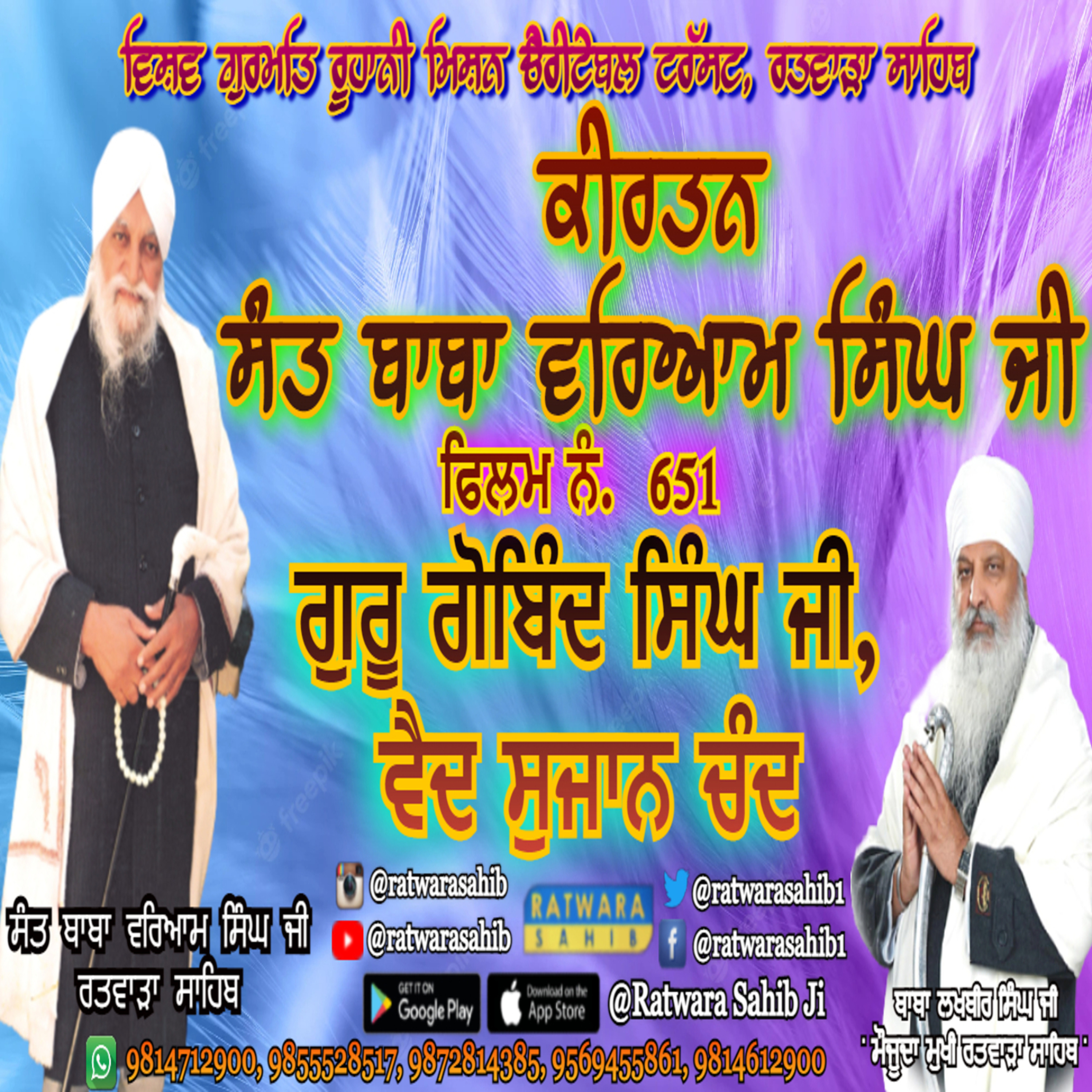 ਫਿਲਮ ਨੰ 651 | ਕੀਰਤਨ ਸੰਤ ਬਾਬਾ ਵਰਿਆਮ ਸਿੰਘ ਜੀ ਰਤਵਾੜਾ ਸਾਹਿਬ | ਸਾਖੀ : ਗੁਰੂ ਗੋਬਿੰਦ ਸਿੰਘ ਜੀ, ਵੈਦ ਸੁਜਾਨ ਚੰਦ |