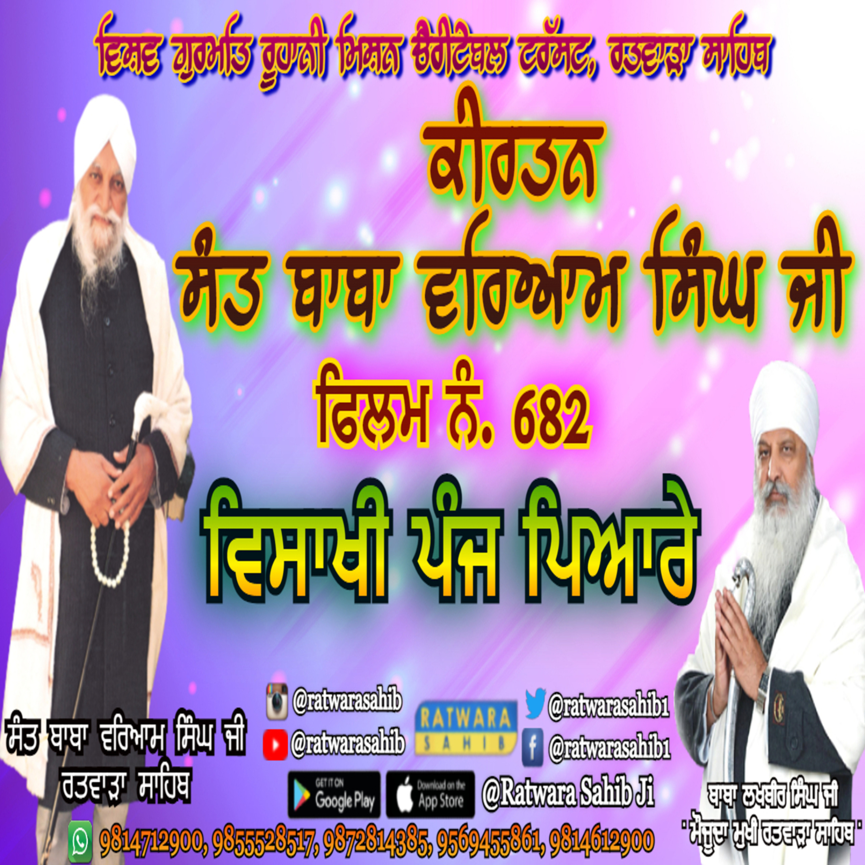 ਫਿਲਮ ਨੰ 682 | ਕੀਰਤਨ ਸੰਤ ਬਾਬਾ ਵਰਿਆਮ ਸਿੰਘ ਜੀ ਰਤਵਾੜਾ ਸਾਹਿਬ | ਸਾਖੀ : ਵਿਸਾਖੀ ਪੰਜ ਪਿਆਰੇ |