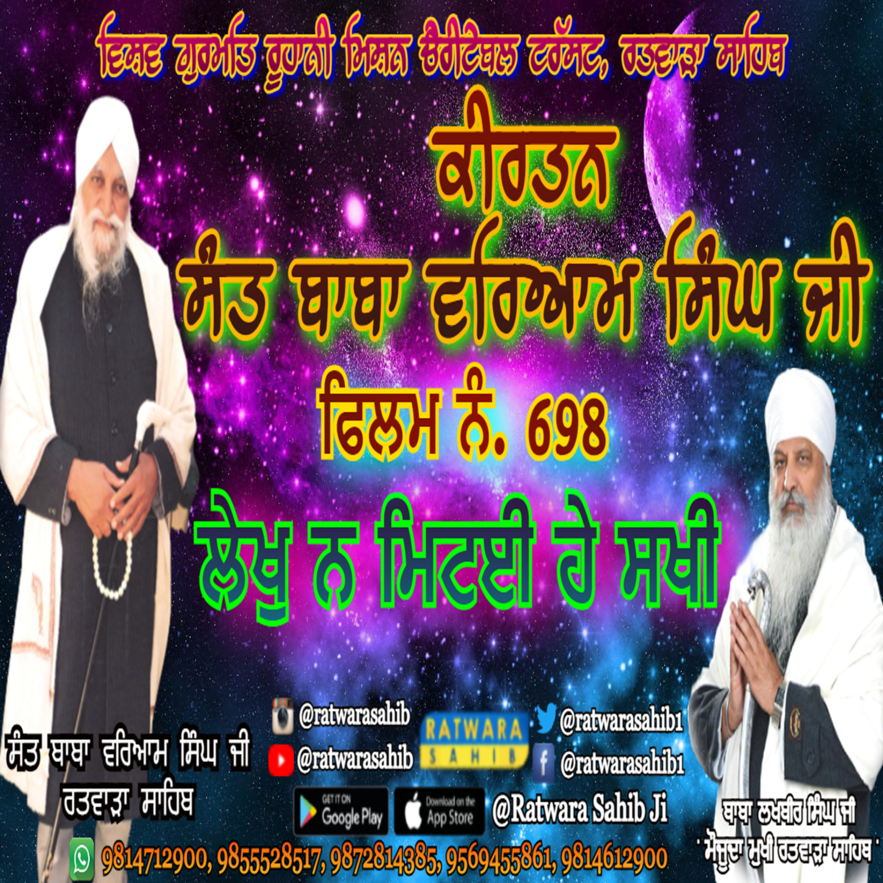 ਫਿਲਮ ਨੰ 698 | ਕੀਰਤਨ ਸੰਤ ਬਾਬਾ ਵਰਿਆਮ ਸਿੰਘ ਜੀ ਰਤਵਾੜਾ ਸਾਹਿਬ | ਸਾਖੀ : ਲੇਖੁ ਨ ਮਿਟਈ ਹੇ ਸਖੀ |