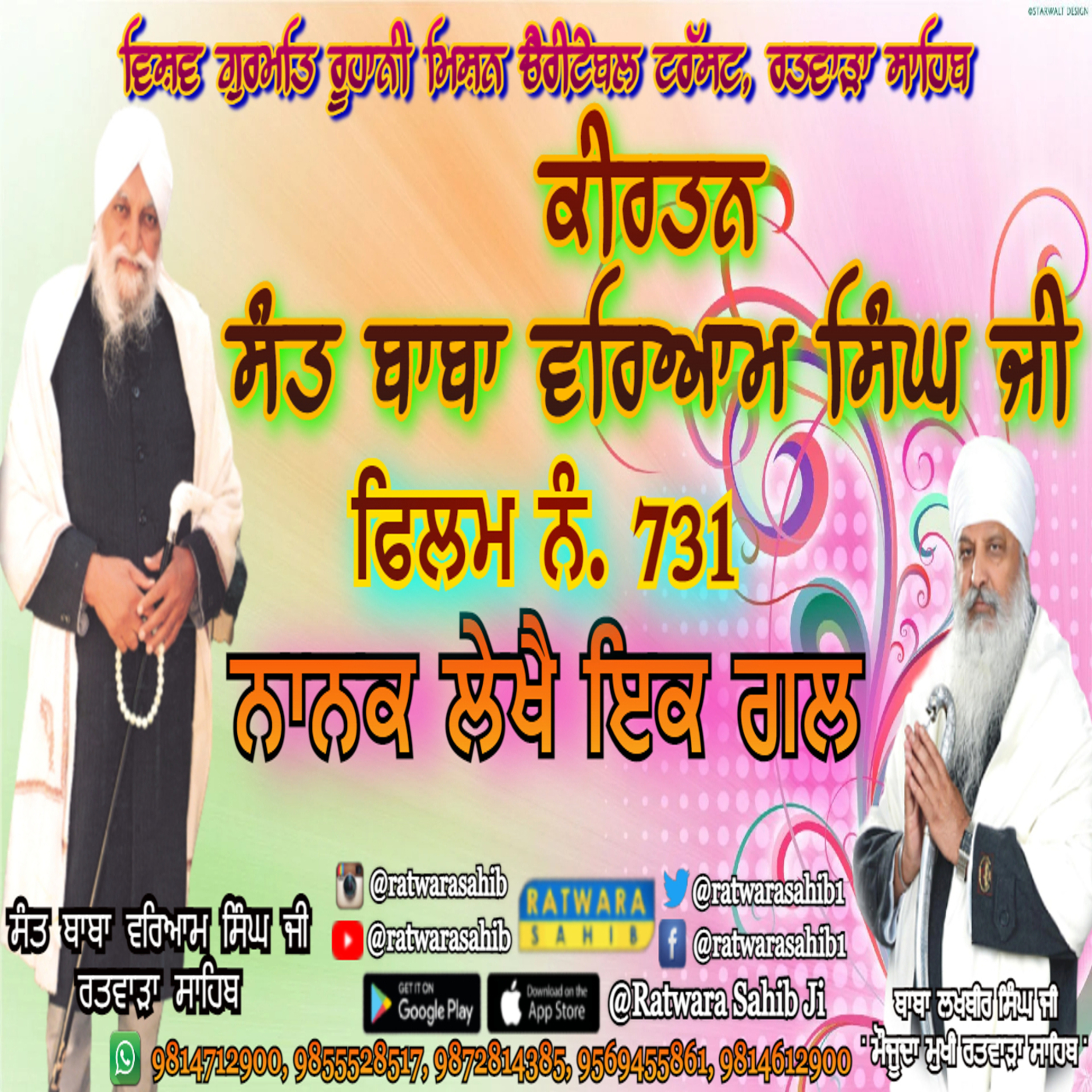 ਫਿਲਮ ਨੰ 731 | ਕੀਰਤਨ ਸੰਤ ਬਾਬਾ ਵਰਿਆਮ ਸਿੰਘ ਜੀ ਰਤਵਾੜਾ ਸਾਹਿਬ | ਸਾਖੀ : ਨਾਨਕ ਲੇਖੈ ਇਕ ਗਲ |