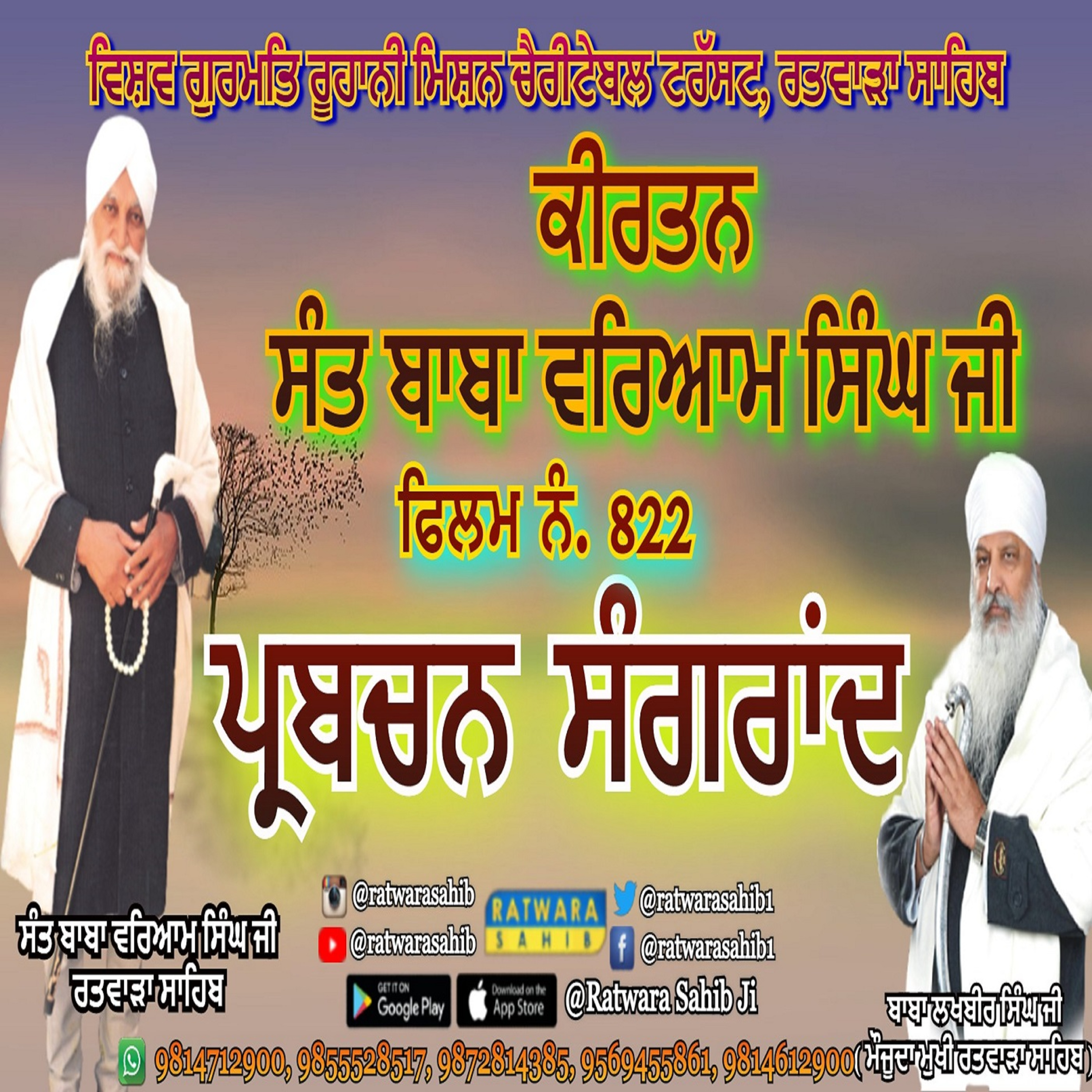 ਫਿਲਮ ਨੰ 822 | ਕੀਰਤਨ ਸੰਤ ਬਾਬਾ ਵਰਿਆਮ ਸਿੰਘ ਜੀ ਰਤਵਾੜਾ ਸਾਹਿਬ | ਸਾਖੀ : ਪ੍ਰਬਚਨ ਸੰਗਰਾਂਦ |