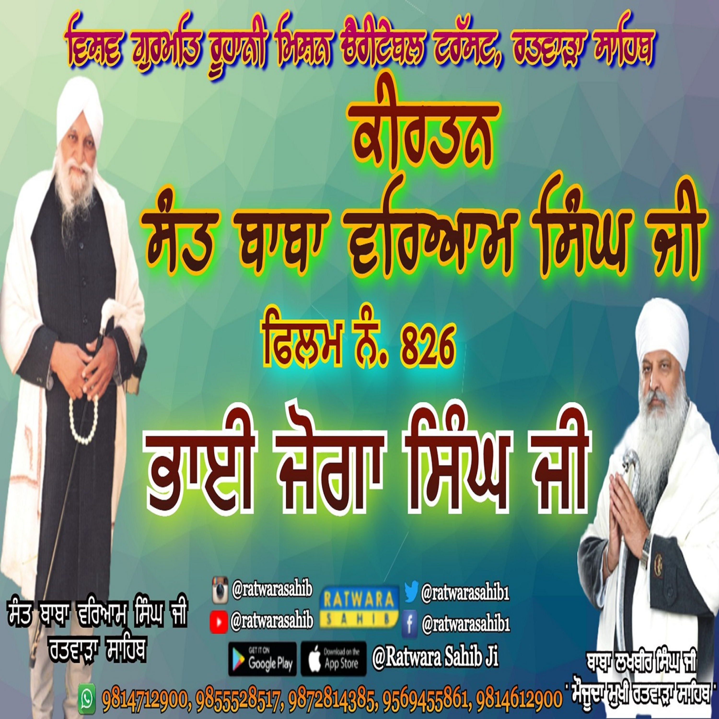 ਫਿਲਮ ਨੰ 826 | ਕੀਰਤਨ ਸੰਤ ਬਾਬਾ ਵਰਿਆਮ ਸਿੰਘ ਜੀ ਰਤਵਾੜਾ ਸਾਹਿਬ | ਸਾਖੀ : ਭਾਈ ਜੋਗਾ ਸਿੰਘ ਜੀ |