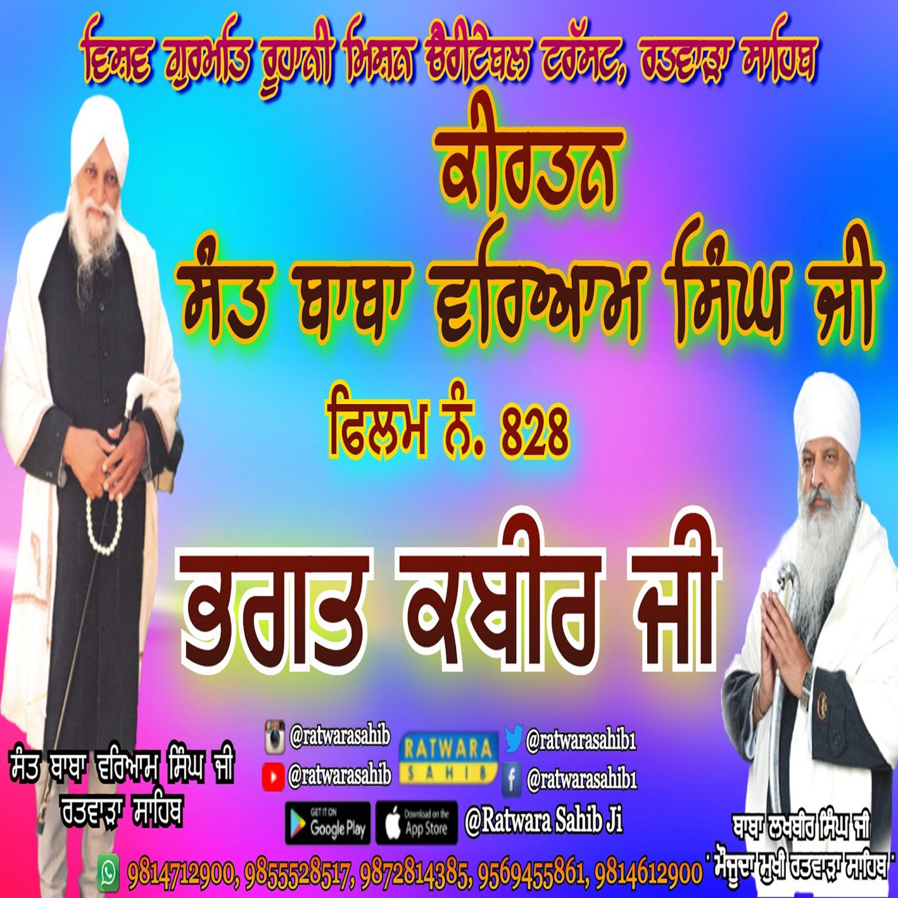 ਫਿਲਮ ਨੰ 828 | ਕੀਰਤਨ ਸੰਤ ਬਾਬਾ ਵਰਿਆਮ ਸਿੰਘ ਜੀ ਰਤਵਾੜਾ ਸਾਹਿਬ | ਸਾਖੀ : ਭਗਤ ਕਬੀਰ ਜੀ |