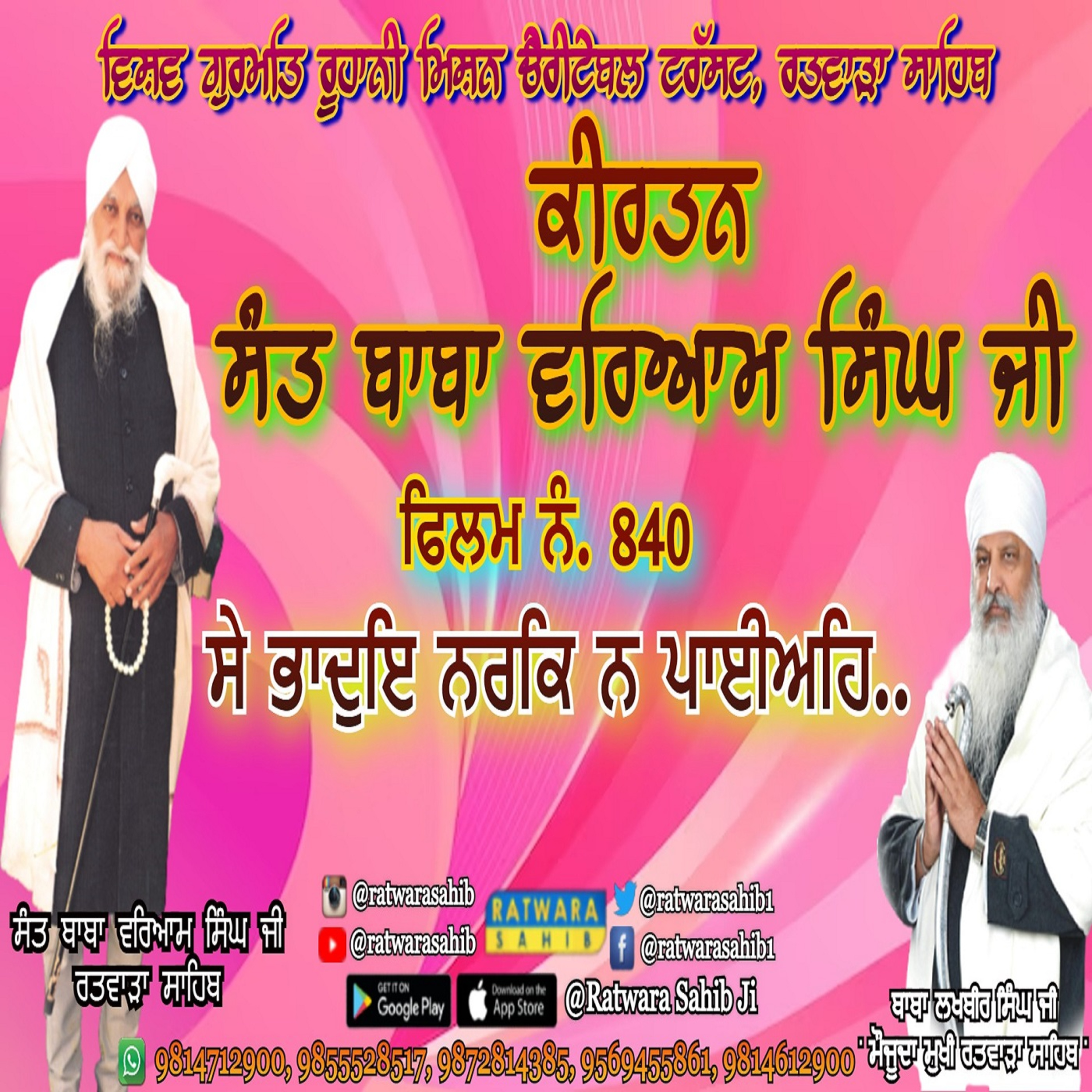 ਫਿਲਮ ਨੰ 840 | ਕੀਰਤਨ ਸੰਤ ਬਾਬਾ ਵਰਿਆਮ ਸਿੰਘ ਜੀ ਰਤਵਾੜਾ ਸਾਹਿਬ | ਸਾਖੀ : ਸੇ ਭਾਦੁਇ ਨਰਕਿ ਨ ਪਾਈਅਹਿ.. |