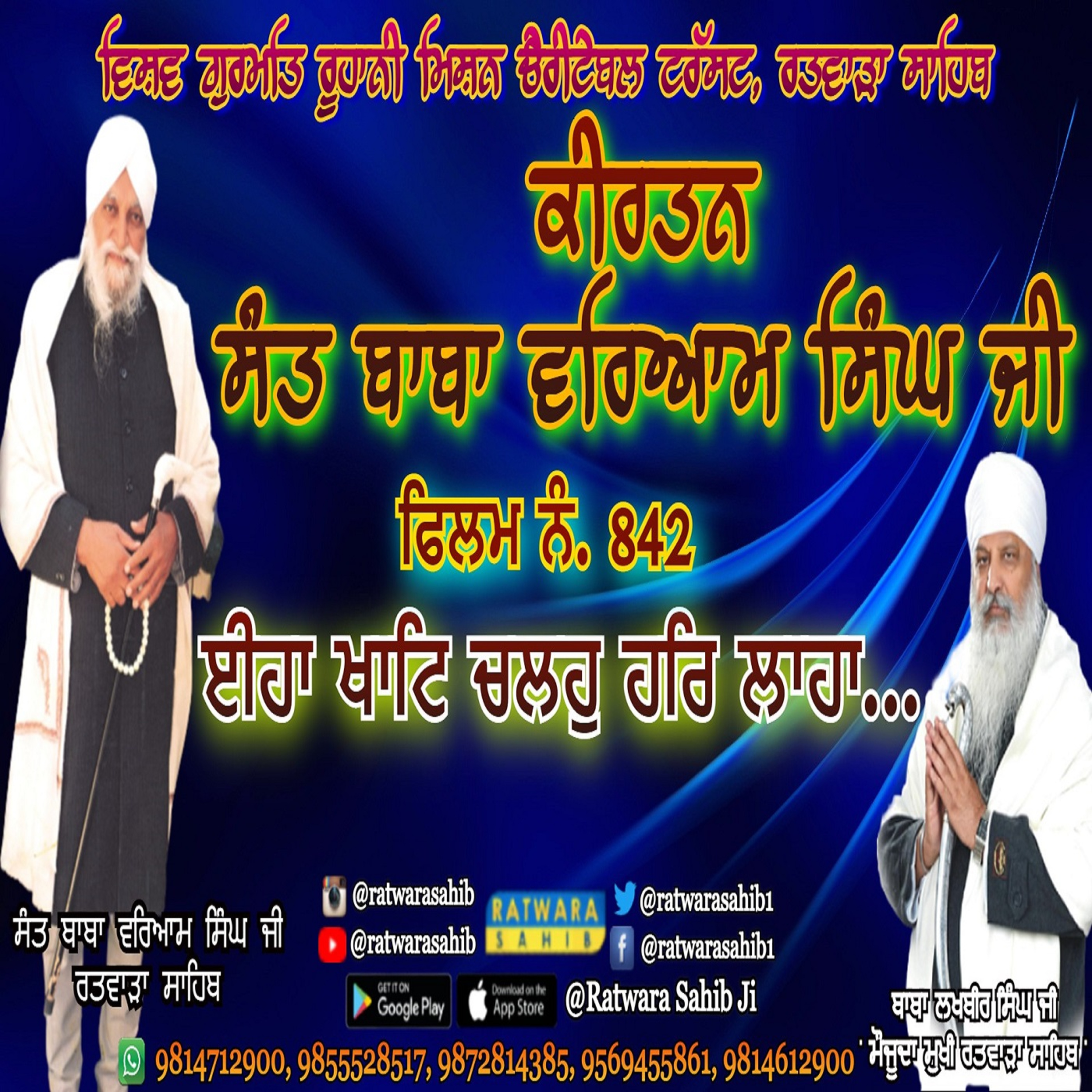 ਫਿਲਮ ਨੰ 842 | ਕੀਰਤਨ ਸੰਤ ਬਾਬਾ ਵਰਿਆਮ ਸਿੰਘ ਜੀ ਰਤਵਾੜਾ ਸਾਹਿਬ | ਸਾਖੀ : ਈਹਾਂ ਖਾਟਿ ਚਲਹੋ ਹਰਿ ਲਾਹਾ... |
