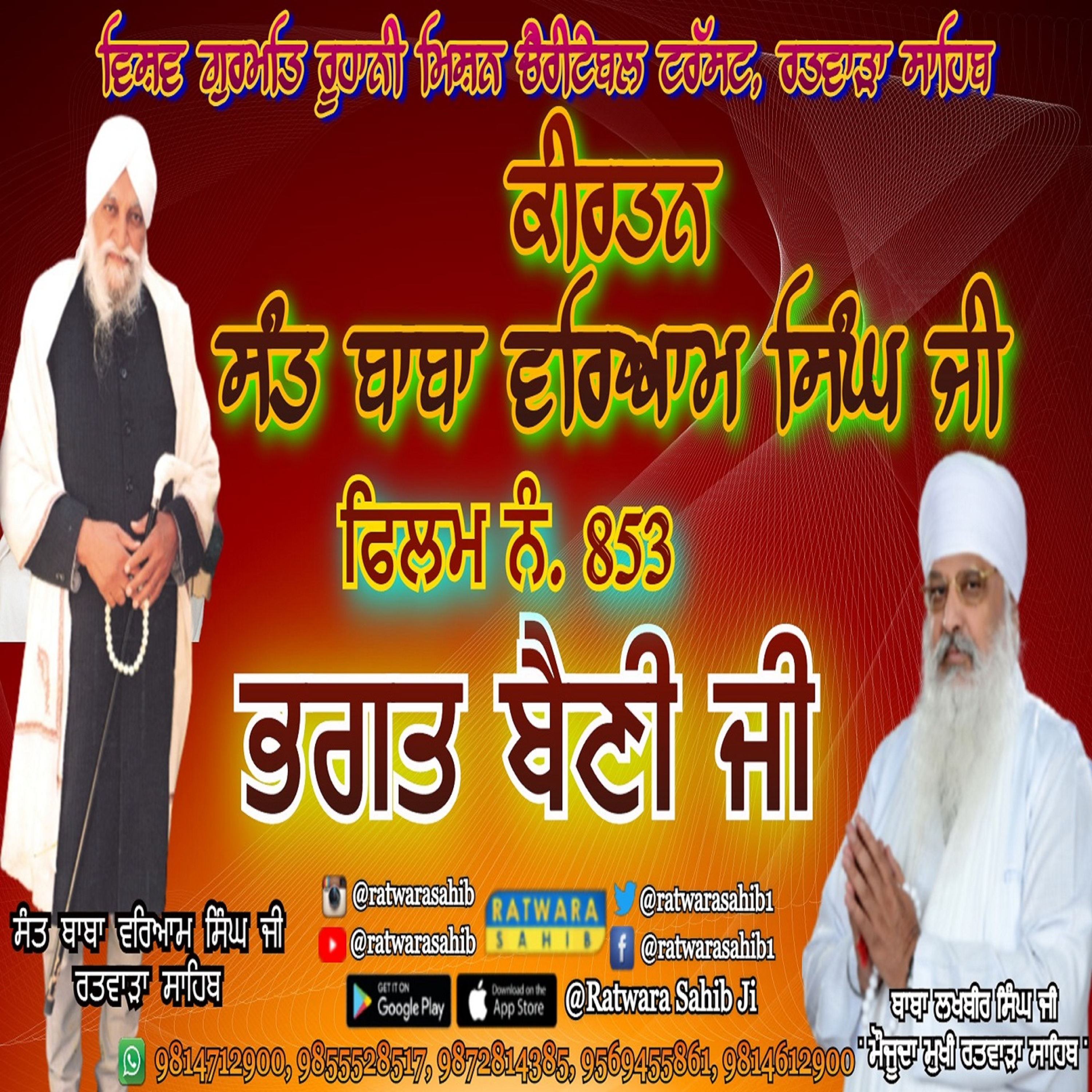 ਫਿਲਮ ਨੰ 853 | ਕੀਰਤਨ ਸੰਤ ਬਾਬਾ ਵਰਿਆਮ ਸਿੰਘ ਜੀ ਰਤਵਾੜਾ ਸਾਹਿਬ | ਸਾਖੀ : ਭਗਤ ਬੈਣੀ ਜੀ |