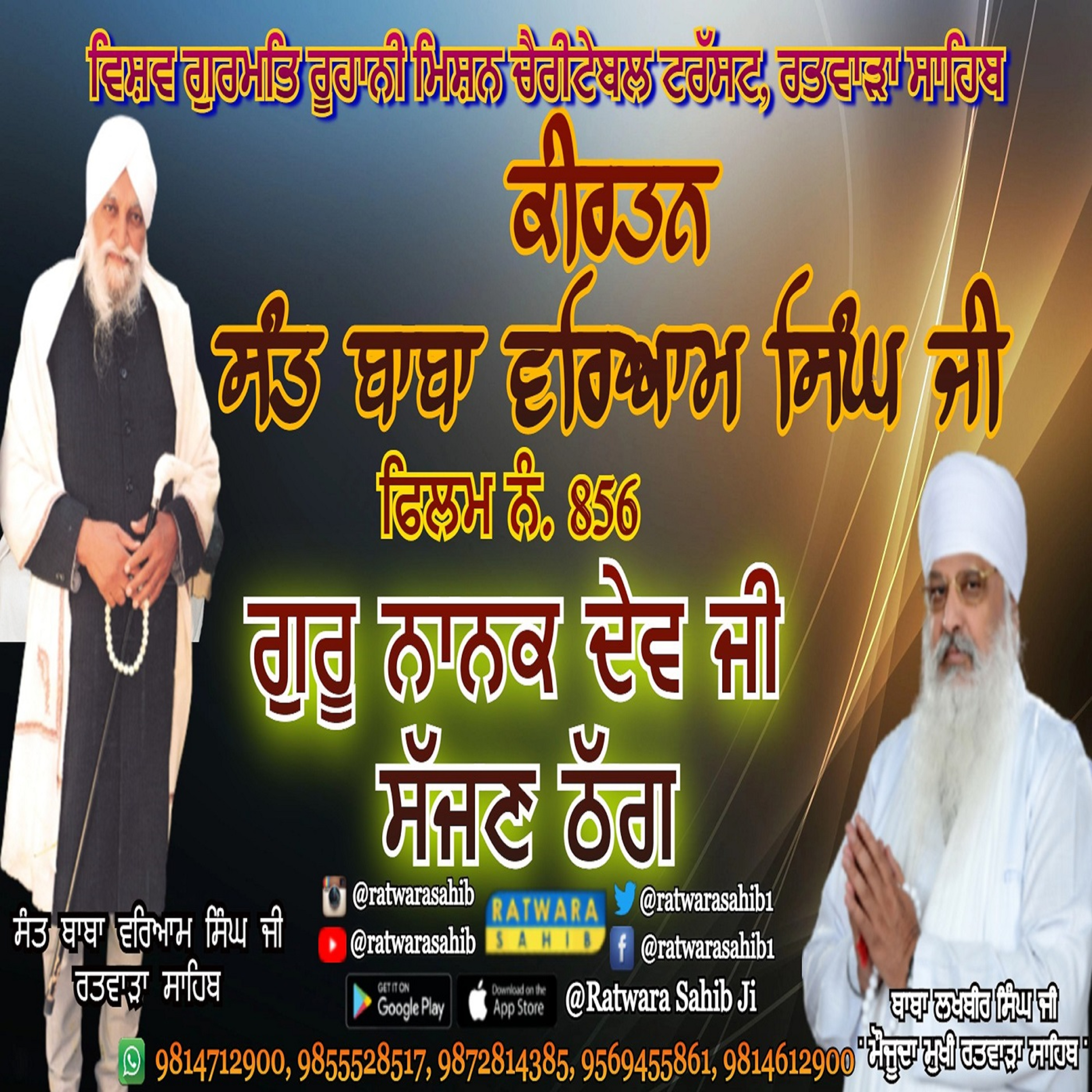 ਫਿਲਮ ਨੰ 856 | ਕੀਰਤਨ ਸੰਤ ਬਾਬਾ ਵਰਿਆਮ ਸਿੰਘ ਜੀ ਰਤਵਾੜਾ ਸਾਹਿਬ | ਸਾਖੀ : ਗੁਰੂ ਨਾਨਕ ਦੇਵ ਜੀ. ਸੱਜਣ ਠੱਗ |