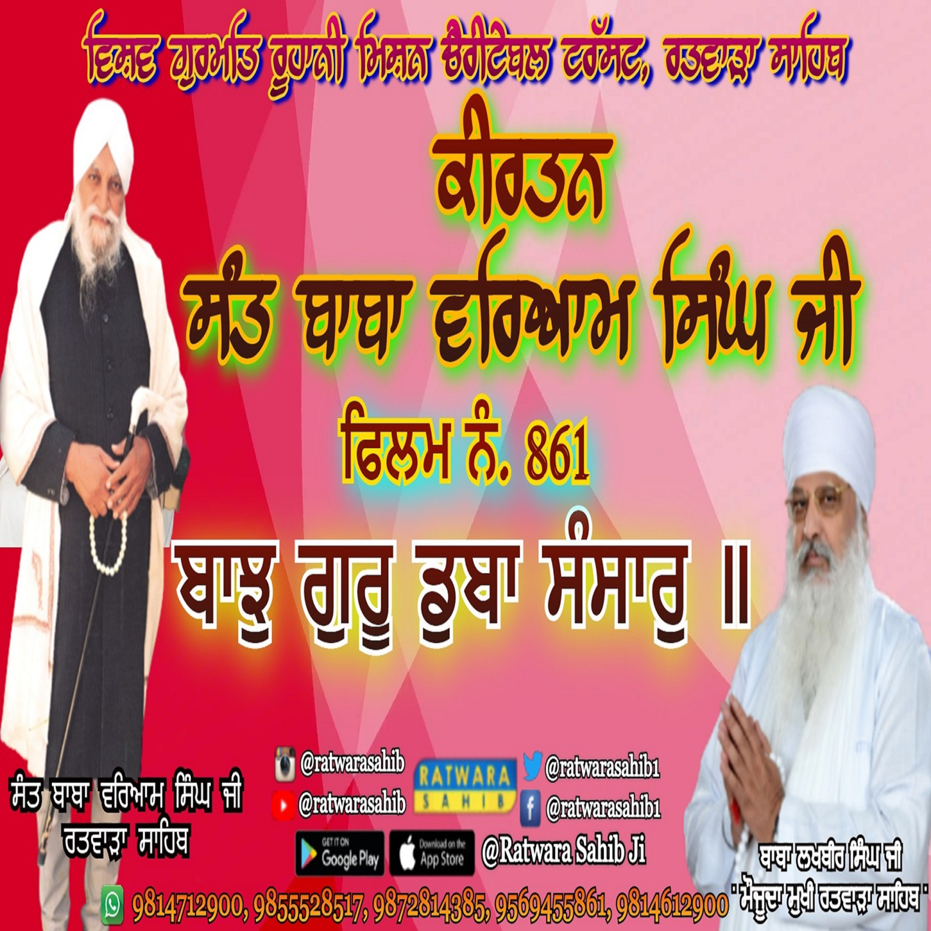 ਫਿਲਮ ਨੰ 861 | ਕੀਰਤਨ ਸੰਤ ਬਾਬਾ ਵਰਿਆਮ ਸਿੰਘ ਜੀ ਰਤਵਾੜਾ ਸਾਹਿਬ | ਸਾਖੀ : ਬਾਝੁ ਗੁਰੂ ਡੁਬਾ ਸੰਸਾਰੁ ॥|