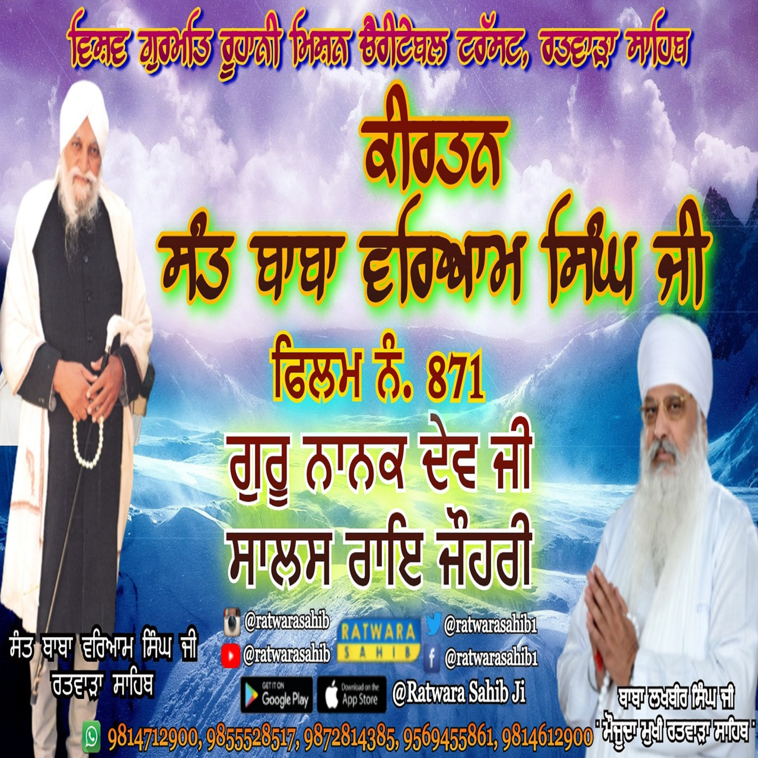 ਫਿਲਮ ਨੰ 872 | ਕੀਰਤਨ ਸੰਤ ਬਾਬਾ ਵਰਿਆਮ ਸਿੰਘ ਜੀ ਰਤਵਾੜਾ ਸਾਹਿਬ | ਸਾਖੀ : ਗੁਰੂ ਨਾਨਕ ਦੇਵ ਜੀ ਤੇ ਸਾਲਸ ਰਾਇ ਜੌਹਰੀ |