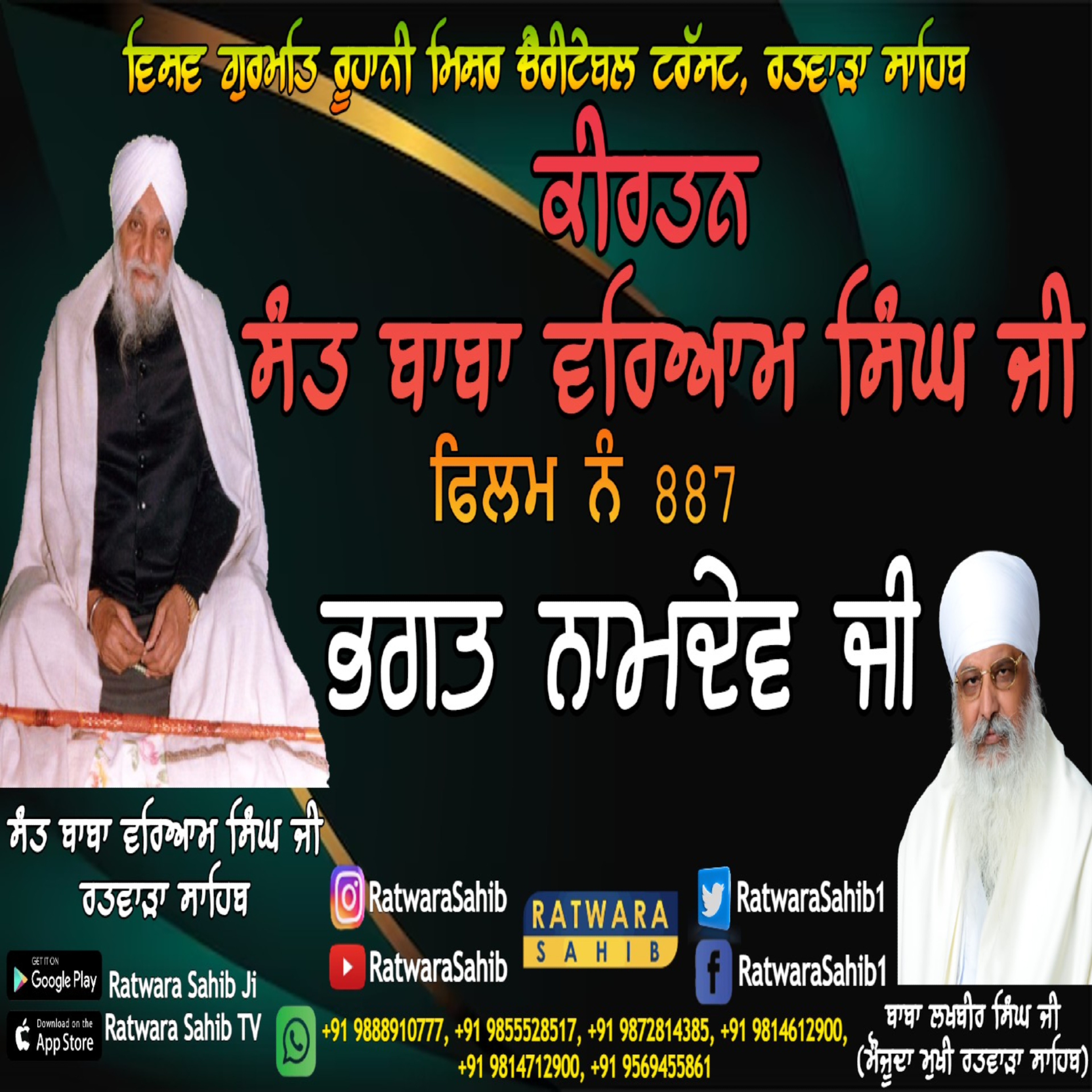 ਫਿਲਮ ਨੰ 887 | ਕੀਰਤਨ ਸੰਤ ਬਾਬਾ ਵਰਿਆਮ ਸਿੰਘ ਜੀ ਰਤਵਾੜਾ ਸਾਹਿਬ | ਸਾਖੀ : ਭਗਤ ਨਾਮਦੇਵ ਜੀ |