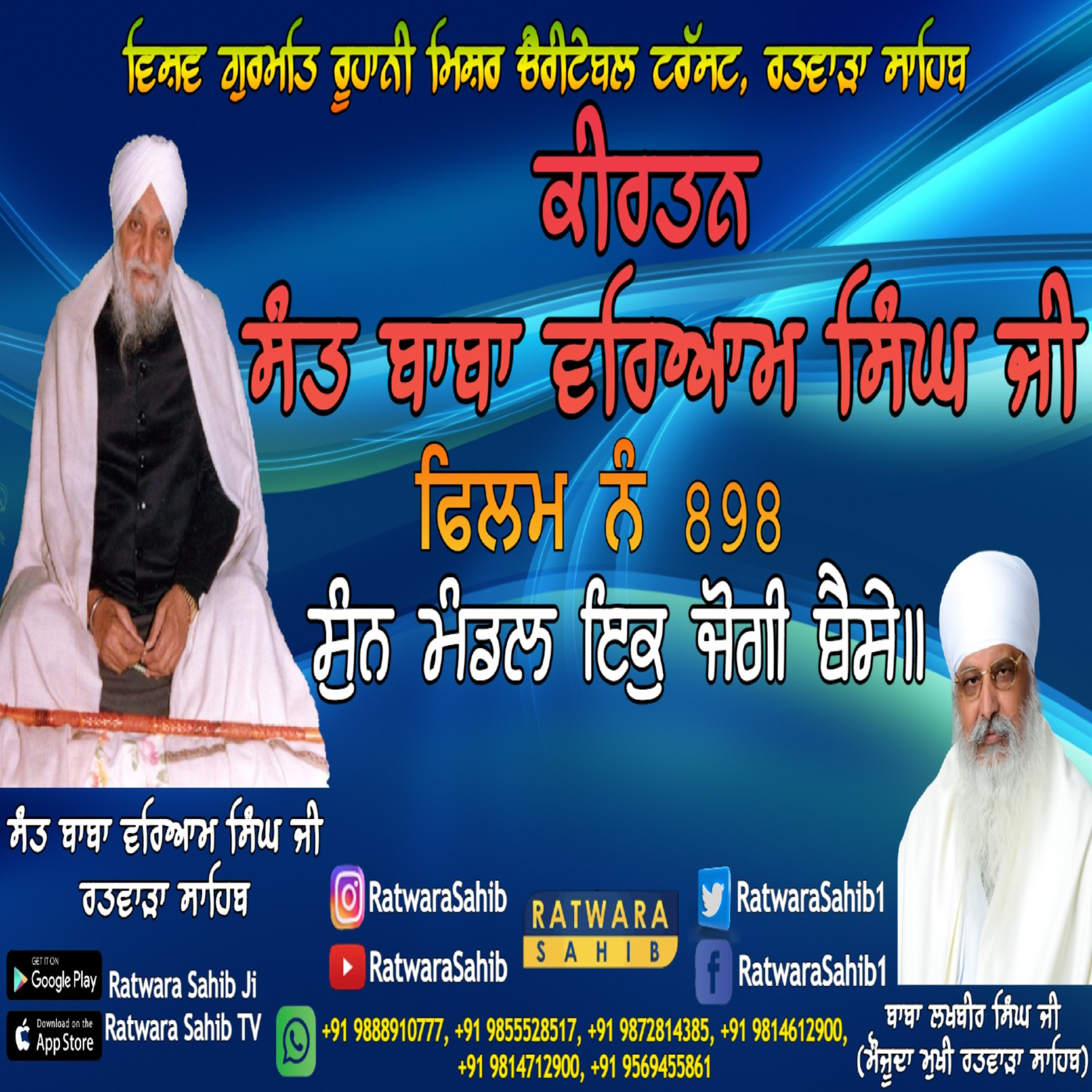 ਫਿਲਮ ਨੰ 898 | ਕੀਰਤਨ ਸੰਤ ਬਾਬਾ ਵਰਿਆਮ ਸਿੰਘ ਜੀ ਰਤਵਾੜਾ ਸਾਹਿਬ | ਸਾਖੀ : ਸੁੰਨ ਮੰਡਲ ਇਕੁ ਜੋਗੀ ਬੈਸੇ ॥ |