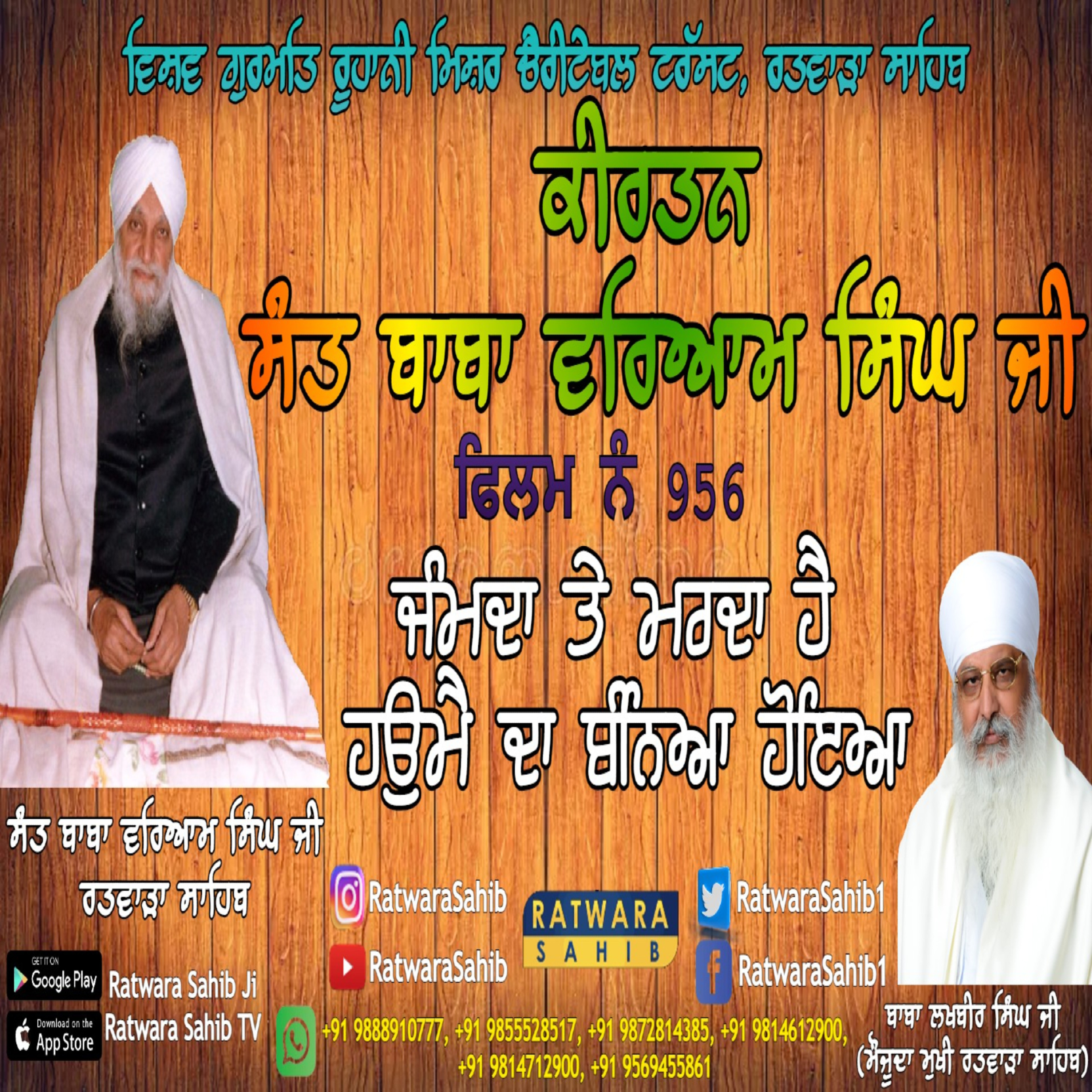 ਫਿਲਮ ਨੰ 956 | ਕੀਰਤਨ ਸੰਤ ਬਾਬਾ ਵਰਿਆਮ ਸਿੰਘ ਜੀ ਰਤਵਾੜਾ ਸਾਹਿਬ | ਸਾਖੀ : ਜੰਮਦਾ ਤੇ ਮਰਦਾ ਹੈ ਹਉਮੈ ਦਾ ਬੰਨਿਆ ਹੋਇਆ |