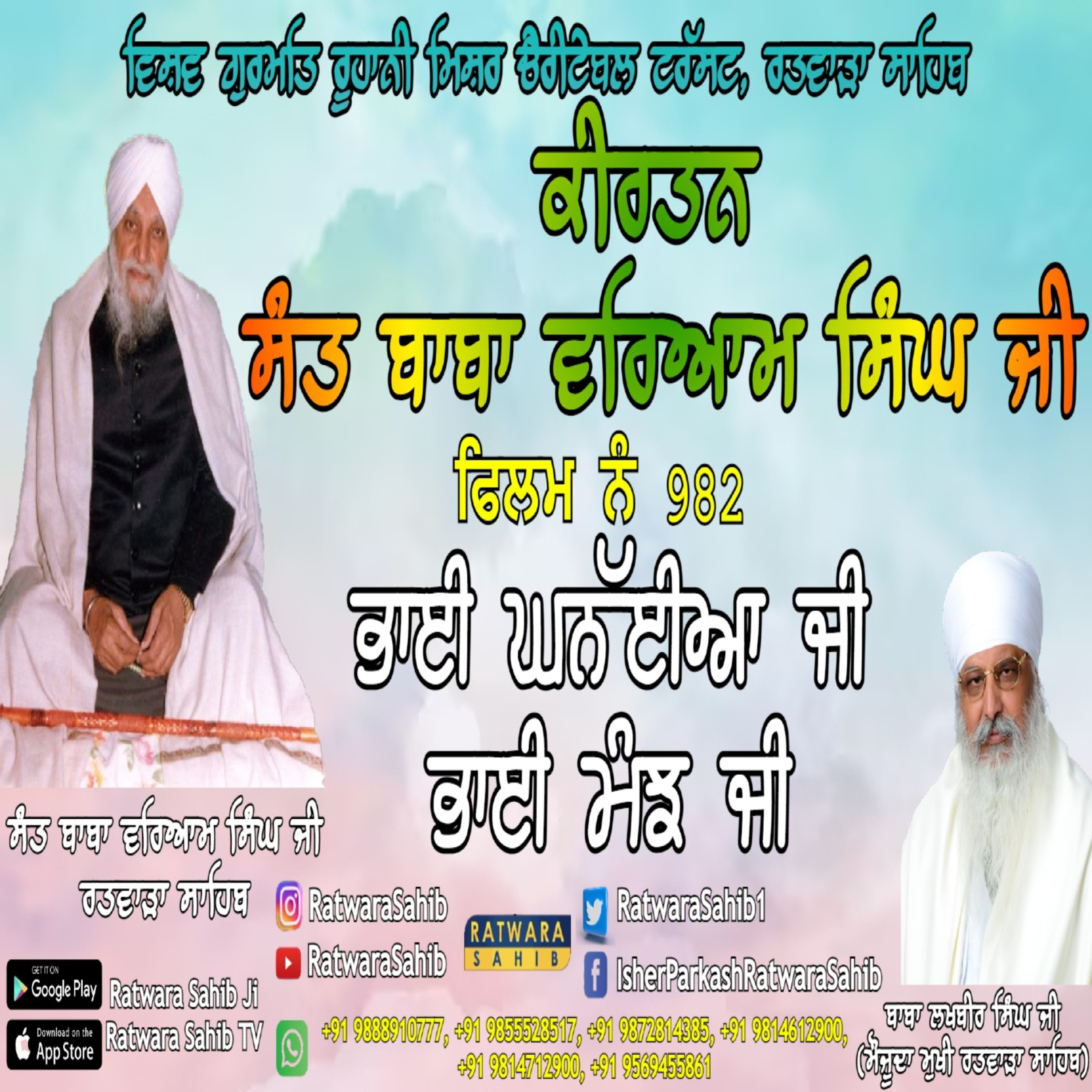 ਫਿਲਮ ਨੰ 982 | ਕੀਰਤਨ ਸੰਤ ਬਾਬਾ ਵਰਿਆਮ ਸਿੰਘ ਜੀ ਰਤਵਾੜਾ ਸਾਹਿਬ | ਸਾਖੀ : ਗੁਭਾਈ ਘਨੱਈਆ ਜੀ, ਭਾਈ ਮੰਝ ਜੀ |