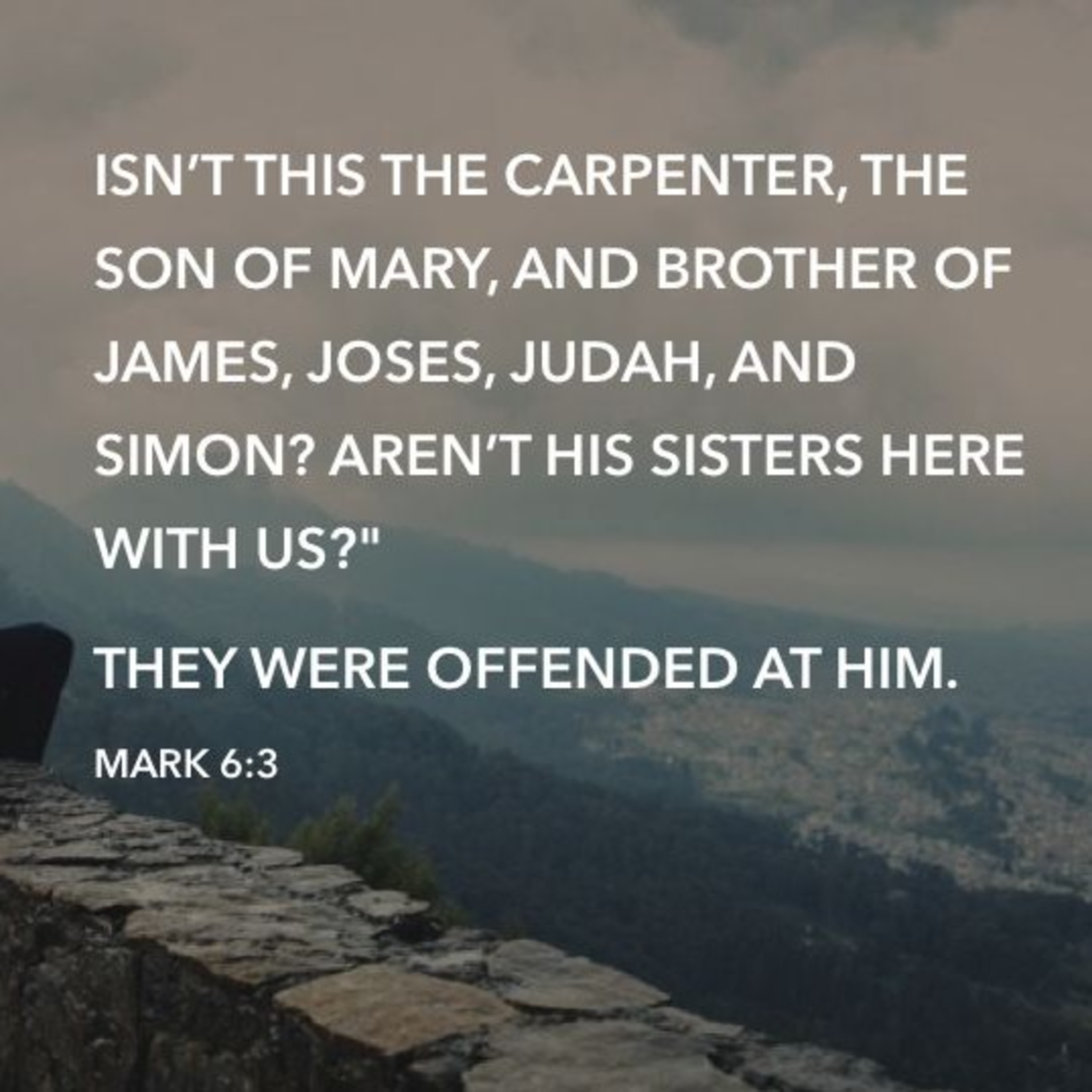 Is this not the carpenter, the Son of Mary, and brother of James, Joses, Judas, and Simon? And are not His sisters here with us?” So they were offended at Him. Mark 6 : 3