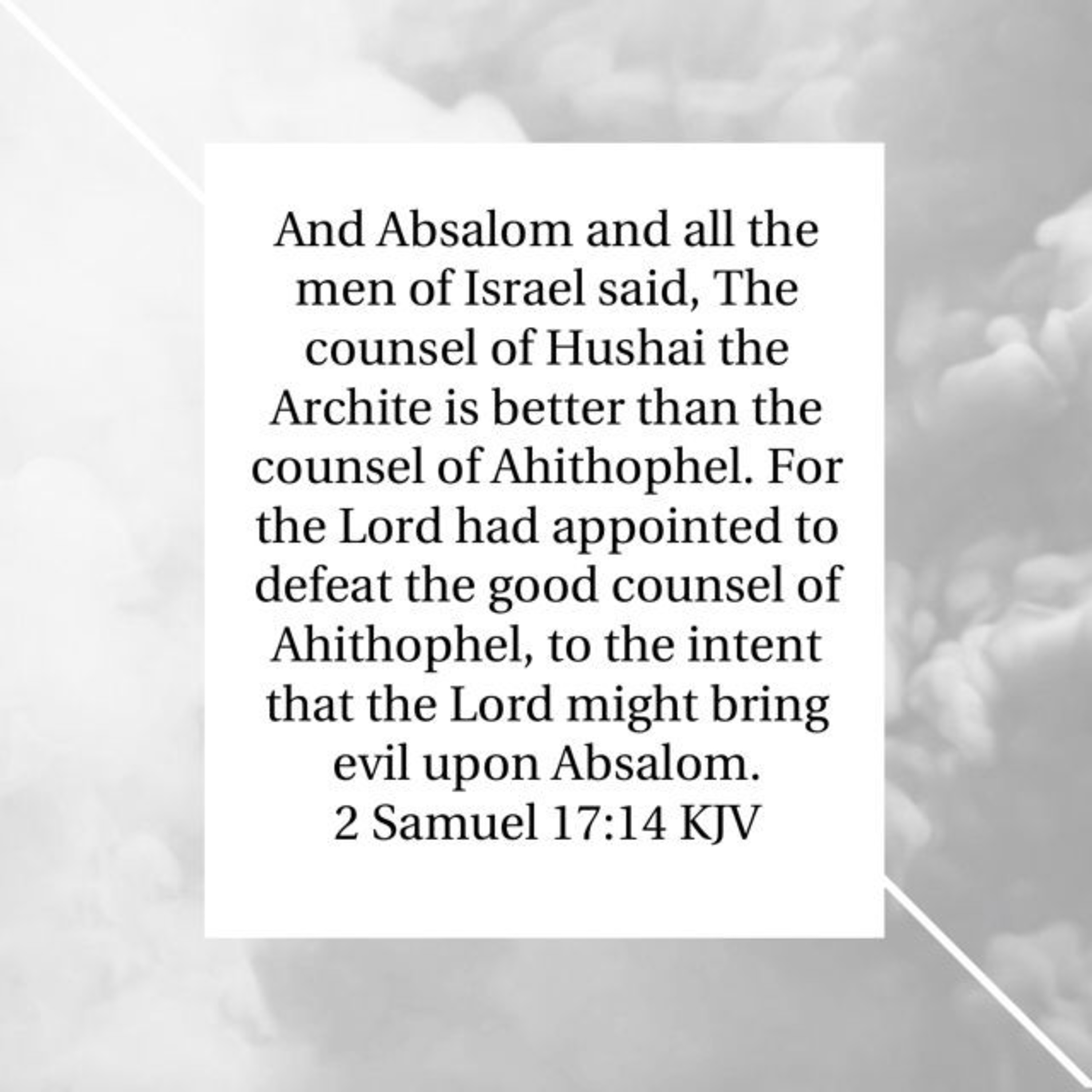 And Absalom and all the men of Israel said, The counsel of Hushai the Archite is better than the counsel of Ahithophel. For the LORD had appointed to defeat the good counsel of Ahithophel, to the intent that the LORD might bring evil upon Absalom. 2 Samuel 17:14