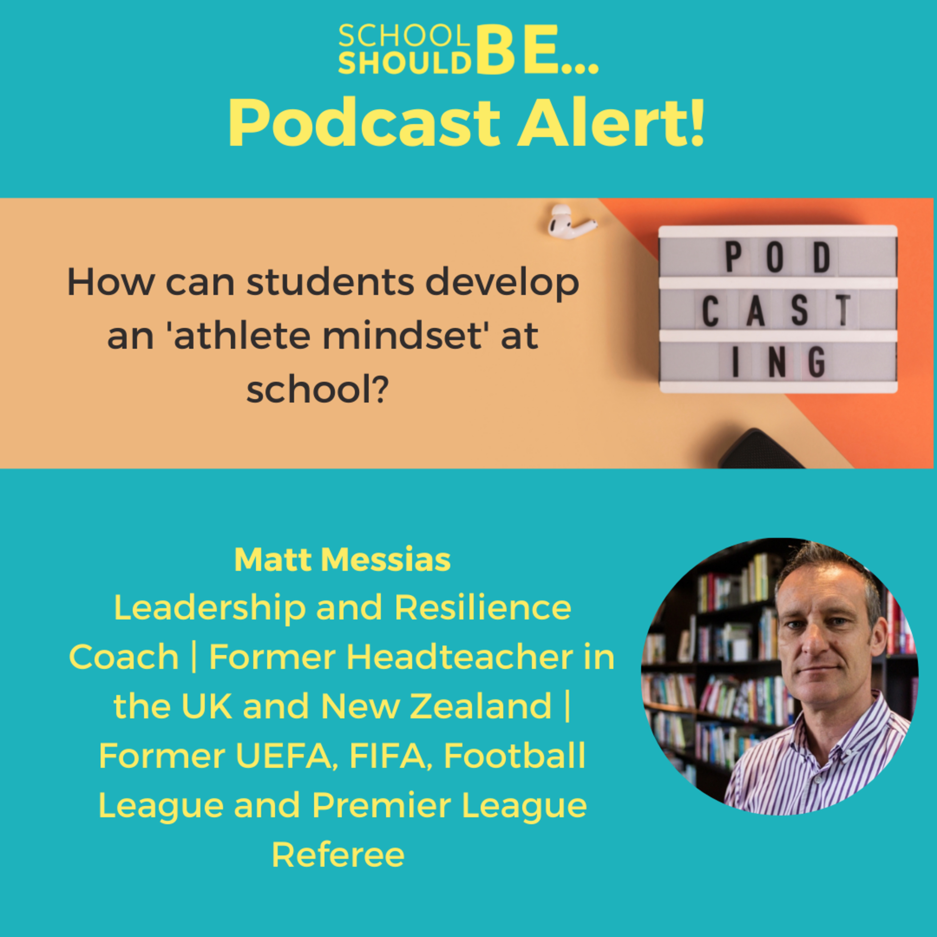 Matt Messias, Leadership and Resilience Coach at Matt Messias Impact Leadership, former Premier League, FIFA, UEFA and Football League referee, AND a headteacher who has led schools internationally in the UK and New Zealand…I couldn’t think of someone more perfect to talk to about what the athlete mindset is and how students can develop the mindset we all know is the key to their success. In this episode, Matt shares the many facets of the athlete mindset, from creativity, play, failure, well-being and mental health, agility, patience, responsibility…and of course, how parents and teachers can enable the athlete mindset.