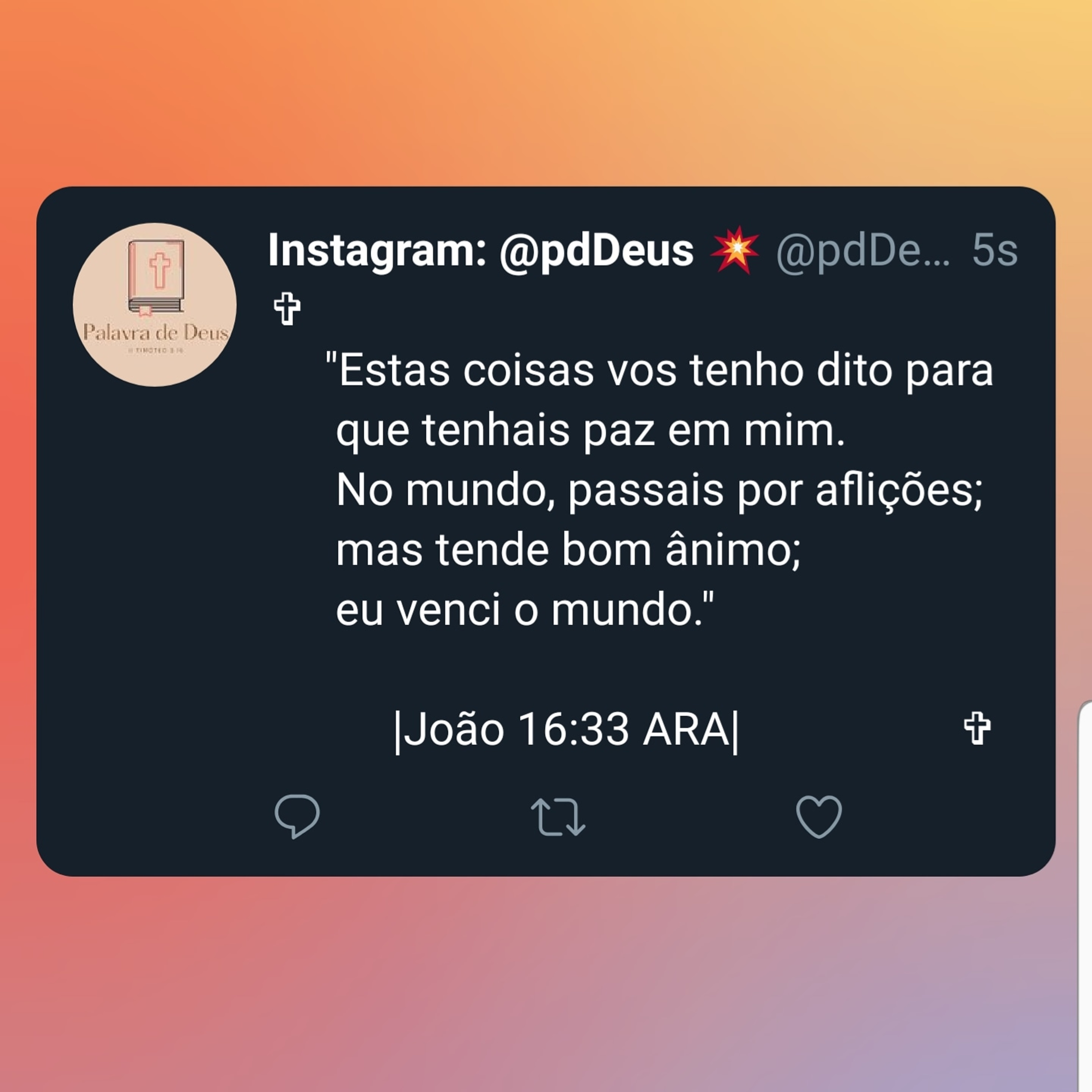 "No mundo, passais por aflições; mas tende bom ânimo; eu venci o mundo."
