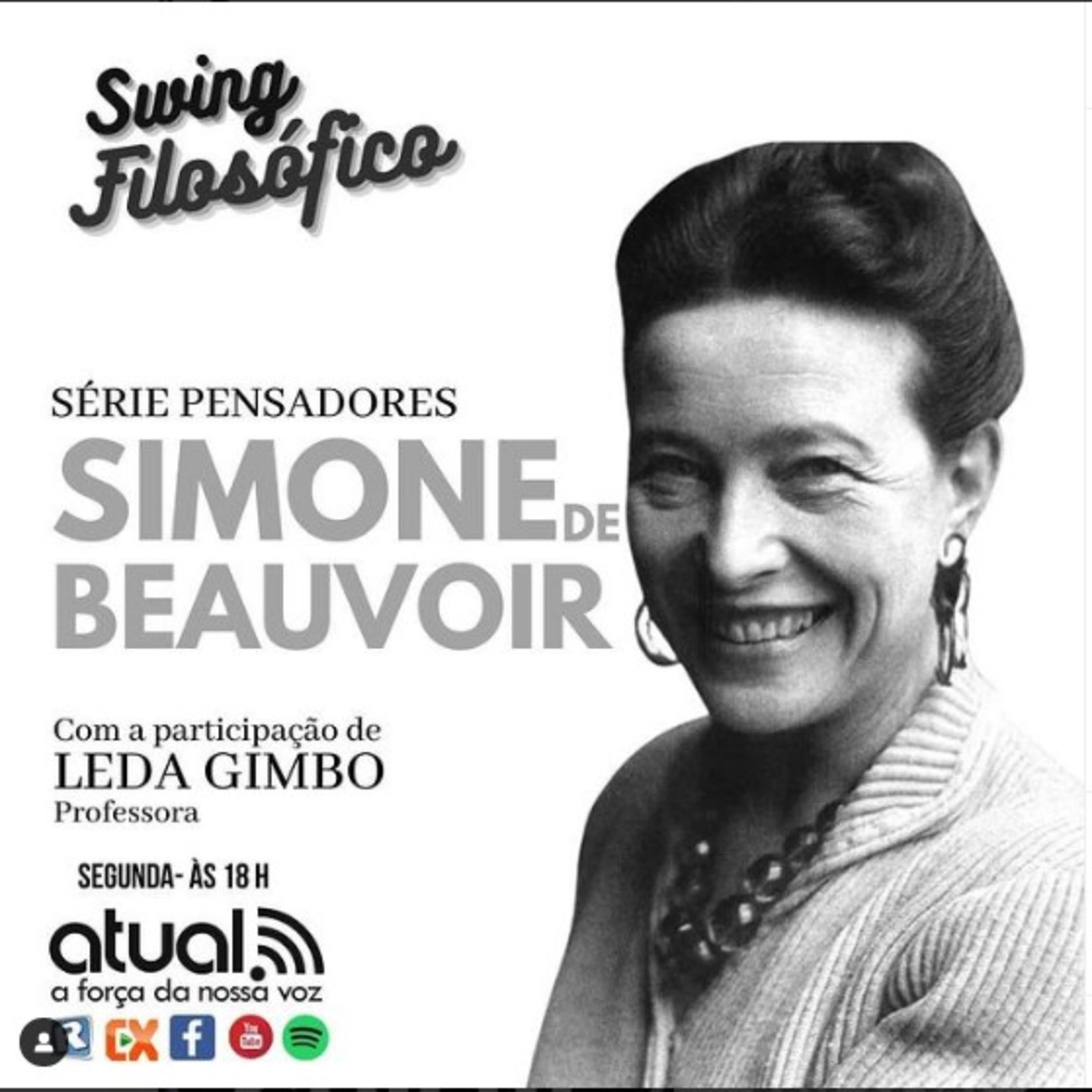 Nesta segunda-feira, mais um episódio da série pensadores, com uma das maiores teóricas do feminino: Simone de Beauvoir. Escritora, intelectual, filósofa existencialista, ativista política, feminista e teórica social francesa, responsável por nos fazer repensar o feminino na atualidade, afinal de contas "“Não se nasce mulher, torna-se mulher” (O segundo sexo). Para elucidar a vida, obra e conceitos, temos a honra de receber a Professora Leda Gimbo (@ledagimbo) para compor a nossa bancada.