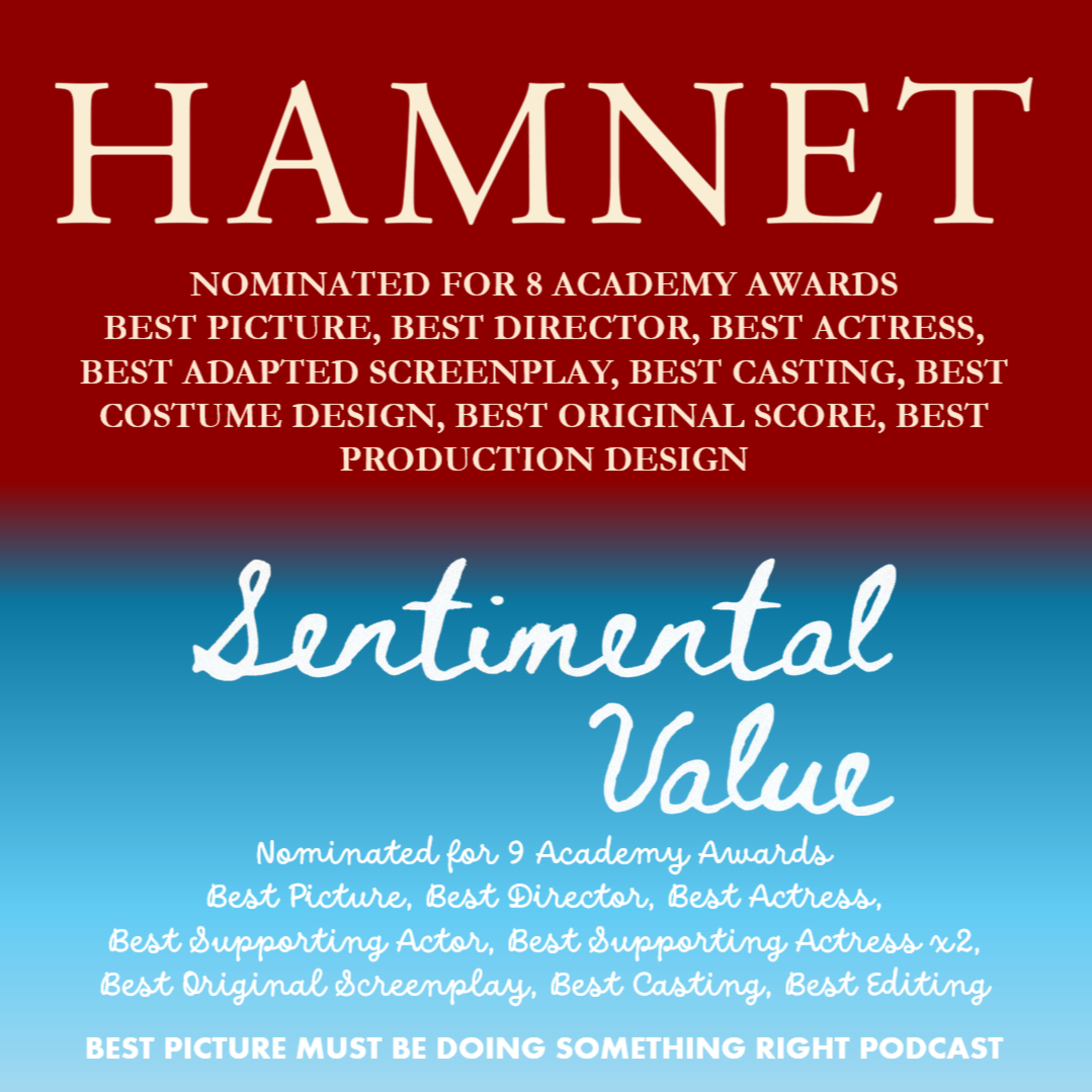 Joseph and Jamie discuss two more of the Best Picture nominees: Chloe Zhao's period drama Hamnet, starring Jessie Buckley and Paul Mescal; and Joachim Trier's Norwegian family drama Sentimental Value, starring Renate Reinsve and Stellan SkarsgÄrd.