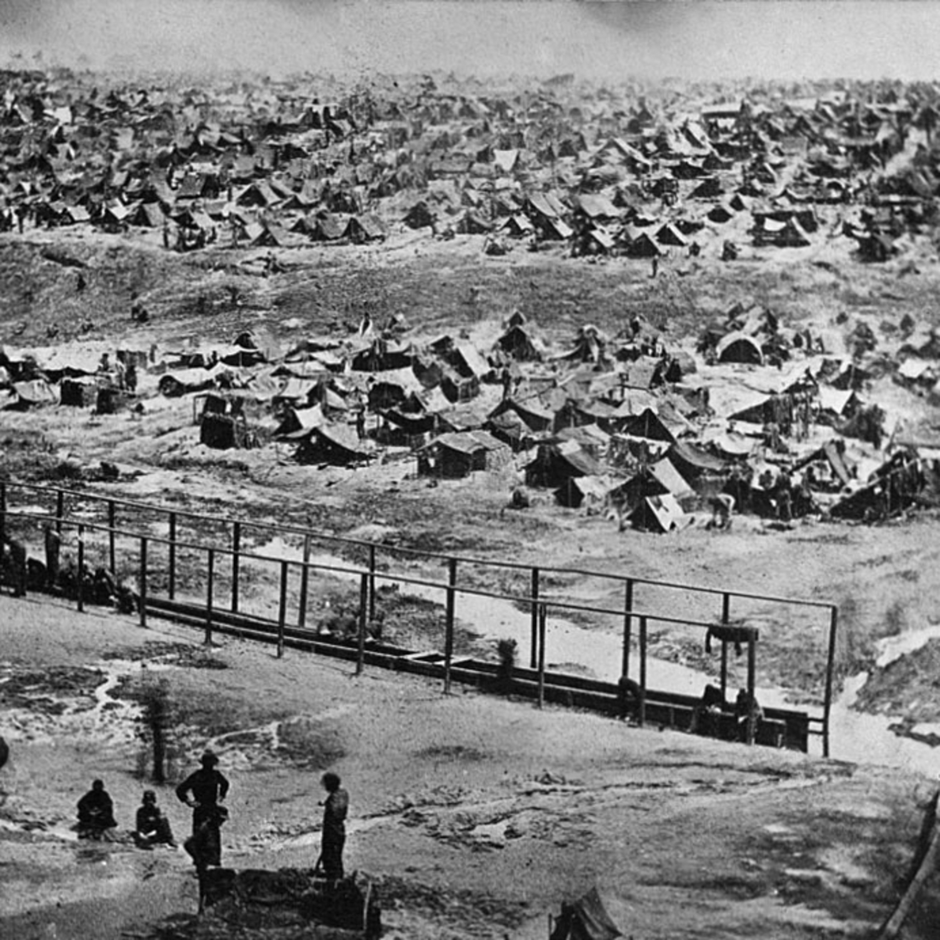 The Confederate government began the construction of their Union prisoner of war camp in Andersonville, Georgia beginning November 1863 and started accepting prisoners in February 1864. The prison was designed to house 10,000 prisoners. During the operation of the prison 400 prisoners arrived daily resulting in nearly 45,000 Union soldiers being transported to Andersonville. Nearly 13,000 Union prisoners died at Andersonville from disease, exposure, and malnutrition. The dead were buried in mass graves dug by the prisoners outside the prison walls. There was an extreme lack of shelter, food, and water. By August 1864 32,000 prisoners remained within the 26-acre prison site.