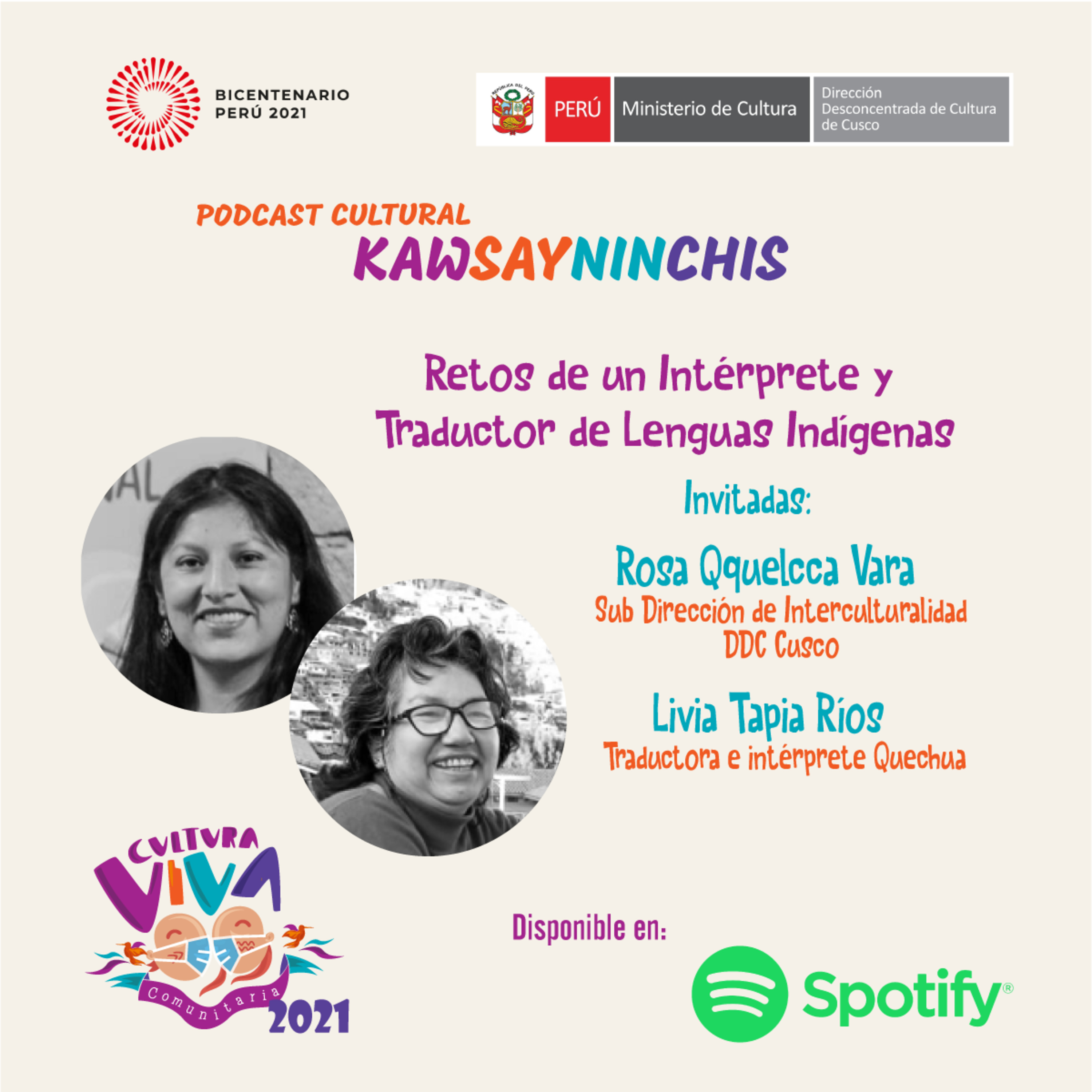 Presentamos el nuevo episodio del #Podcast#Cultural Kawsayninchis, en esta edición conversaremos con Rosa Qquellcca y Livia Tapia sobre los retos de un interprete y traductor de lenguas indÃgenas.