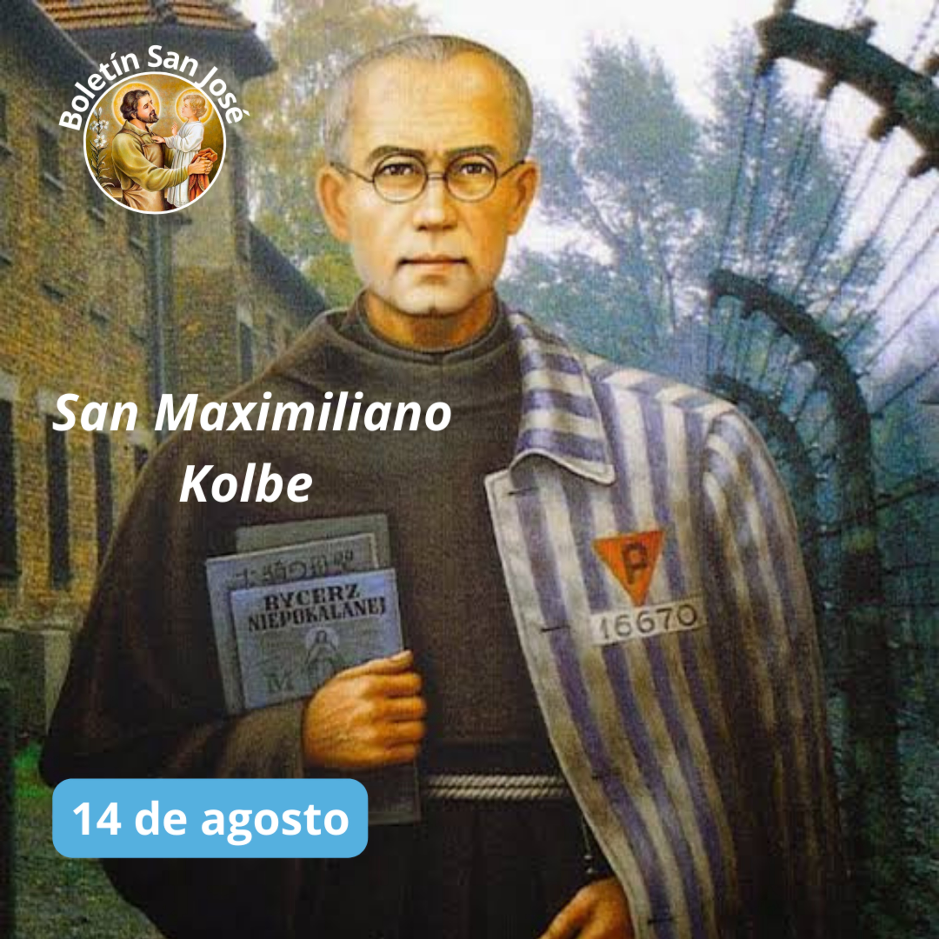 "No hay amor más grande que éste: dar la vida por sus amigos" (Jn 15,13). Se encarna este pasaje bíblico en la persona de San Maximiliano Kolbe al dar su vida por la salvación de su prójimo. 14 agosto.