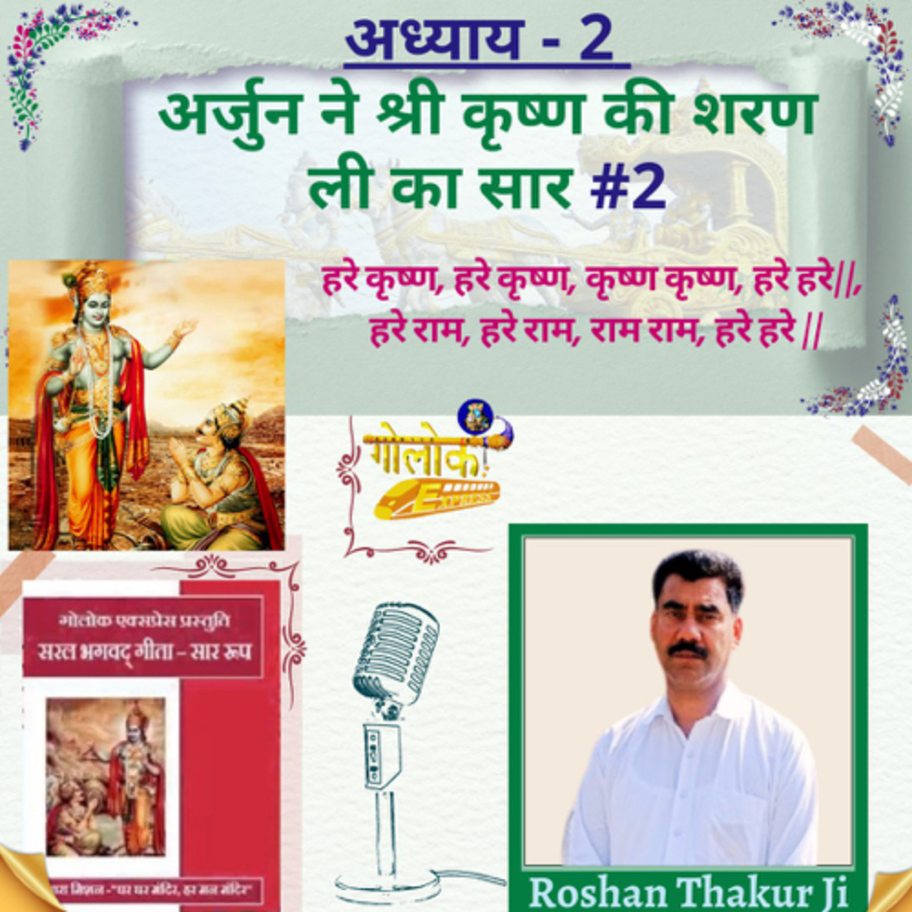 आज रोशन जी ने भगवद गीता के अध्याय दो का सार बताया जिसमे भगवद का पूरा सार है जिसमे अर्जुन ने भगवान की शरण ली है।फ्रेंड्स ये अध्याय हमारे लिए ऐसे जैसे भक्ति के स्कूल में एडमिशन फ्रेंड्स पहले हमे अर्जुन के जैसे बनना मतलब सॉफ्ट हिदय वाला मतलब सरल उसके लिए भक्ति के स्कूल में एडमिशन सरल शब्दों में समझे तो सत्संग लगाना जब हम सत्संग लगाएंगे तब प्रभु की बातो को समझ पाएंगे जैसे पहले अध्याध में अर्जुन प्रभु को अपनी व्यथा सुना रहा अपनी समस्या बता रहे इस अध्याय में कृष्णा बोल रहे अर्जुन का मार्गदर्शन कर रहे।तो यहां अर्जुन के माध्यम से हमे यही प्रेणा मिल रही की हमे प्रभु की शरण में जाना चाहिए उनसे अपनी समस्या का समाधान मगना चाहिए एक प्रभु ही हमारे सच्चे मार्गदर्शन करा सकते तो पहले सत्संग फिर साधना प्रभु का नित्य निरंतर नाम जाप कर के हम खुद को प्रभु को सौप सकते पूरी तरह उनपर आश्रित हो सकते ।