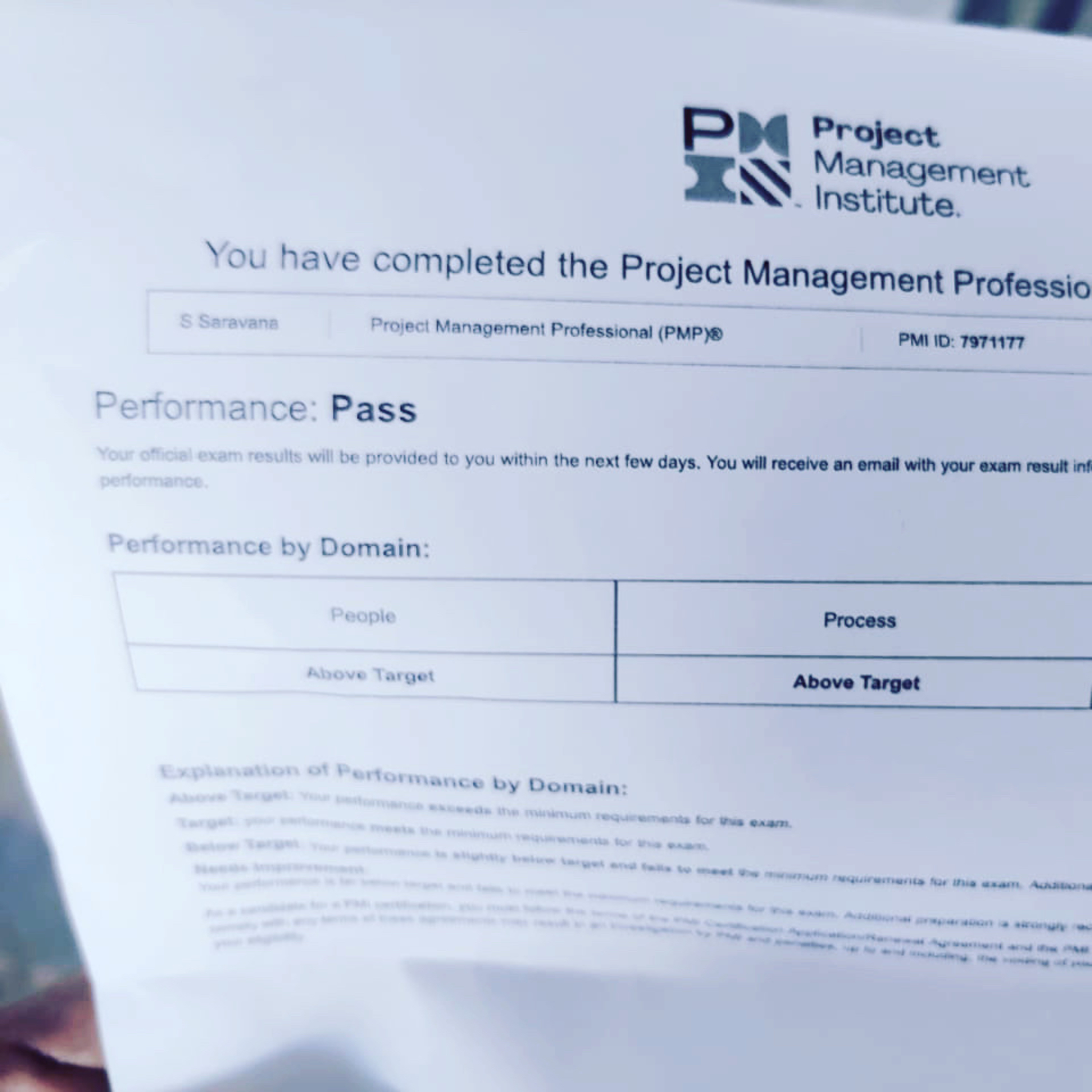 Sarvana cleared pmp with all above traget