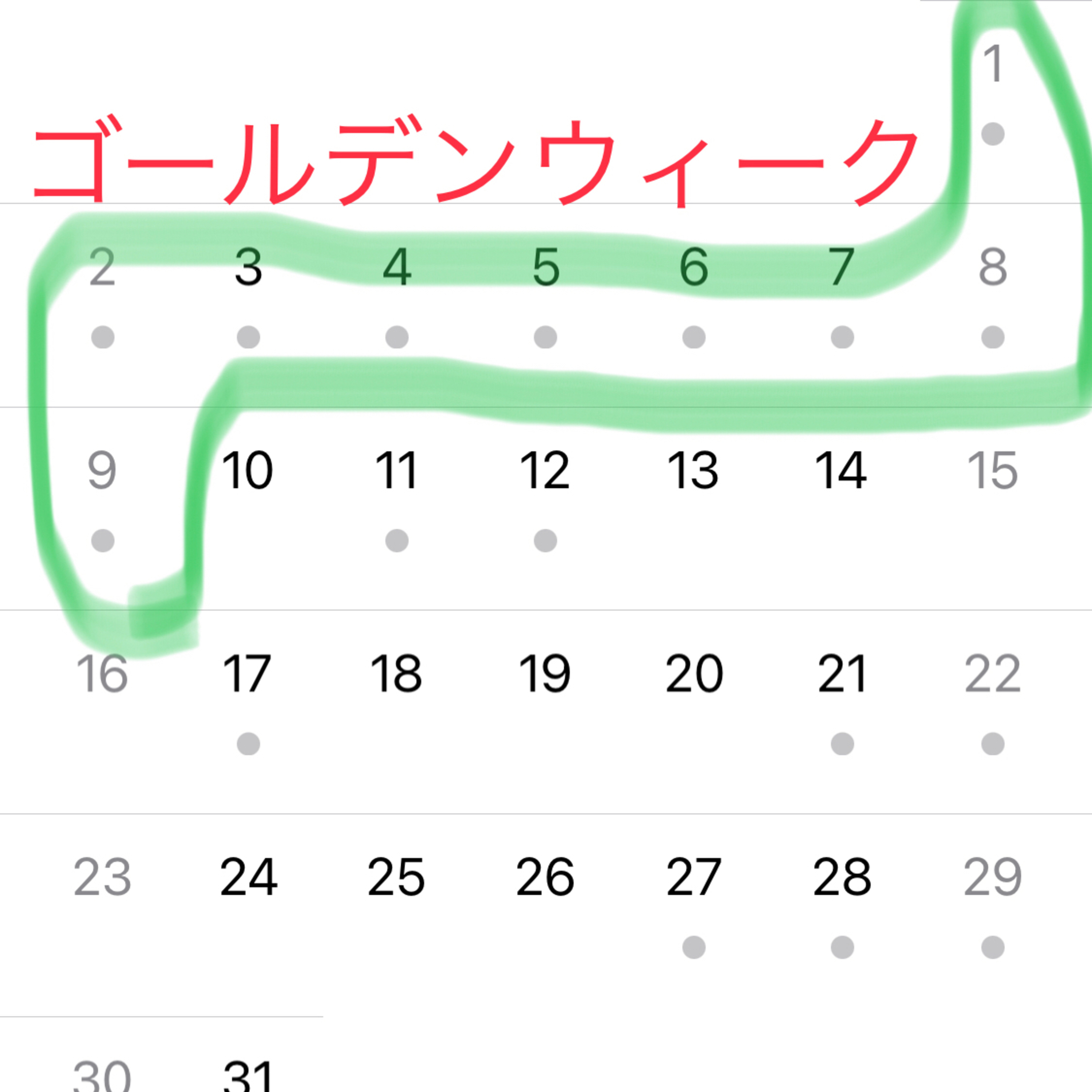 ゴールデンウィークは4月の下旬ごろから5月の頭にかけての連休のことです。