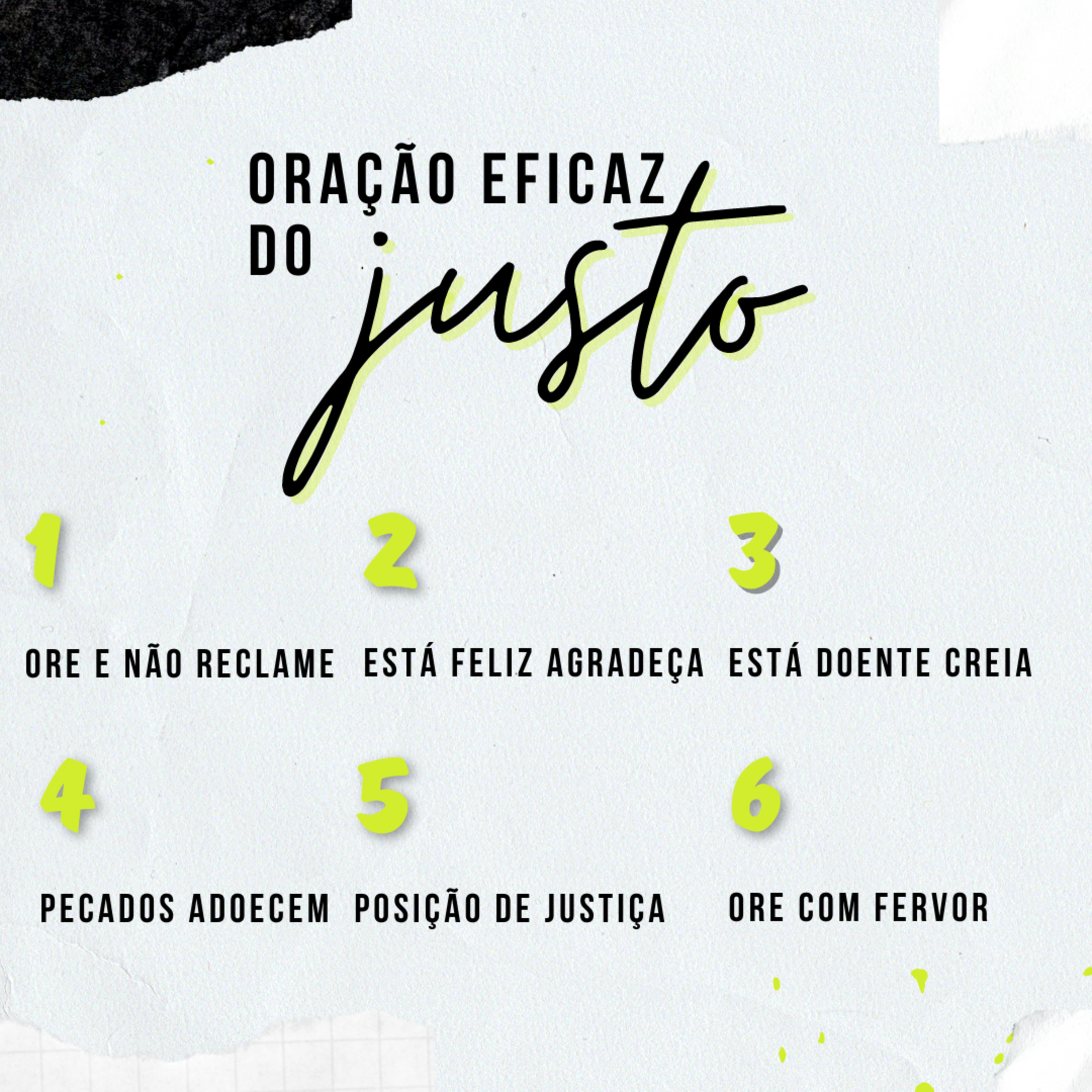 Portanto, confessem seus pecados uns aos outros e orem uns pelos outros para serem curados. A oração de um justo tem grande poder e produz grandes resultados.