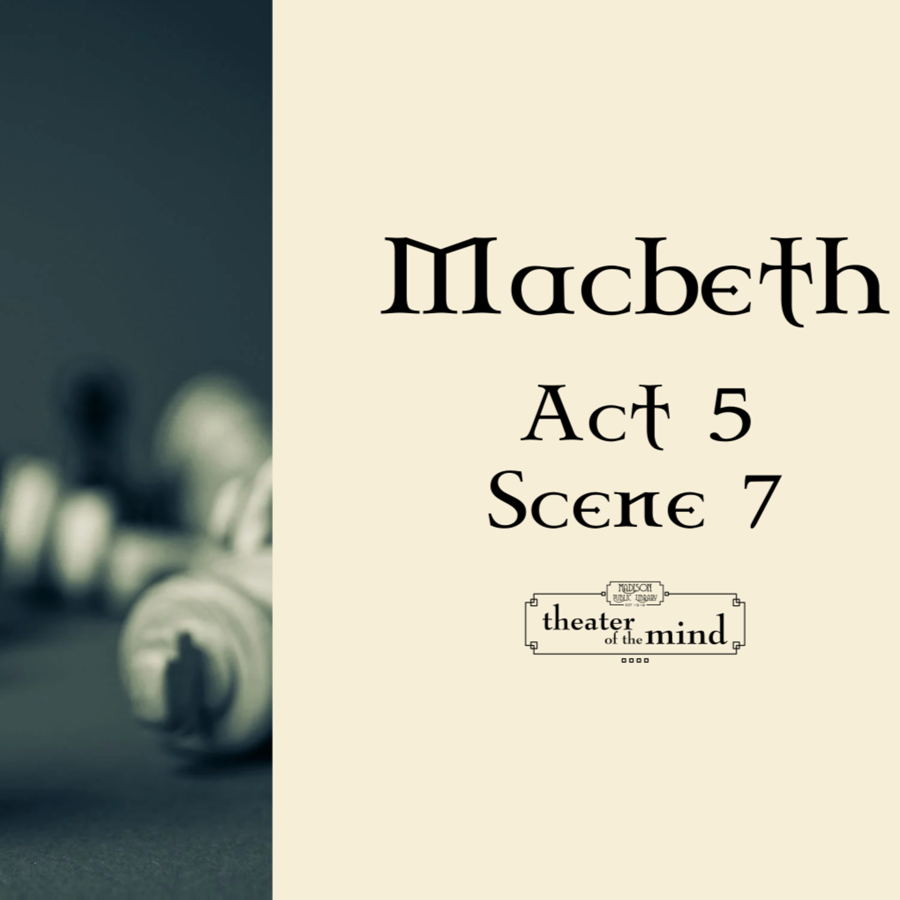 Welcome to Theater of the Mind. Join staff from Madison Public Library as they participate in a month-long dramatic reading of William Shakespeare's Macbeth. Credits: - Stab, Metal Knife in Lettuce, B by Inspector J from freesound.org. Licensed under CC BY 3.0 - Dropping Body on Hard Ground by jjhouse4 from freesound.org. Licensed under CC BY 3.0 - Footsteps, Stones, A by Inspector J from freesound.org. Licensed under CC BY 3.0 - Gravel-running by Sunboy from freesound.org. Licensed under CC BY 3.0 - Running on Ground by Disagree from freesound.org. Licensed under CC BY 3.0